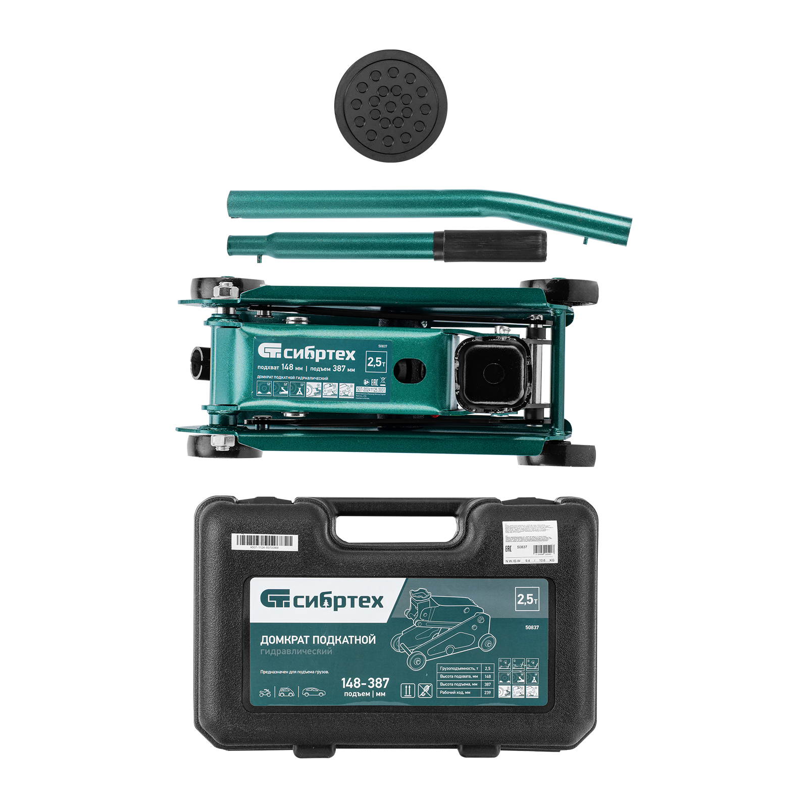 Домкрат - 1 штРукоятка домкрата - 1 штРезиновая опора - 1 штРуководство по эксплуатации - 1 штПластиковый кейс - 1шт |