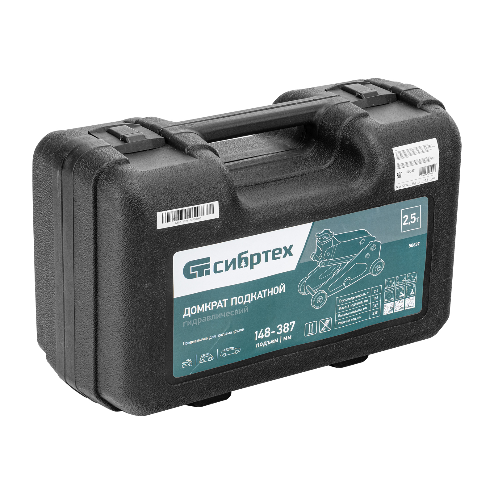 Домкрат гидравлический подкатной, 2,5 т, 148-387 мм, в пласт. кейсе Сибртех в Казани