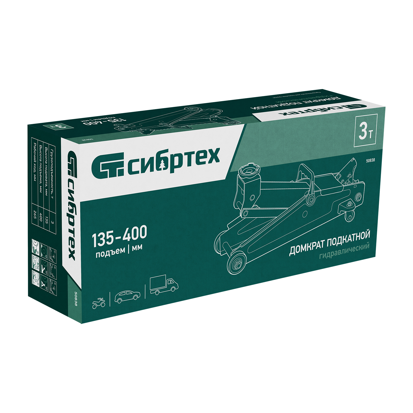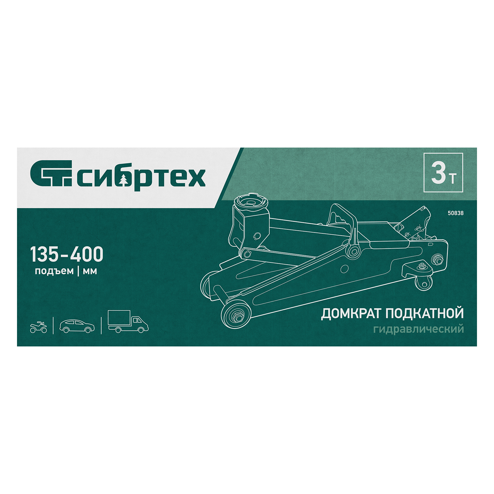 Домкрат гидравлический подкатной, 3 т, 135-400 мм Сибртех в Казани