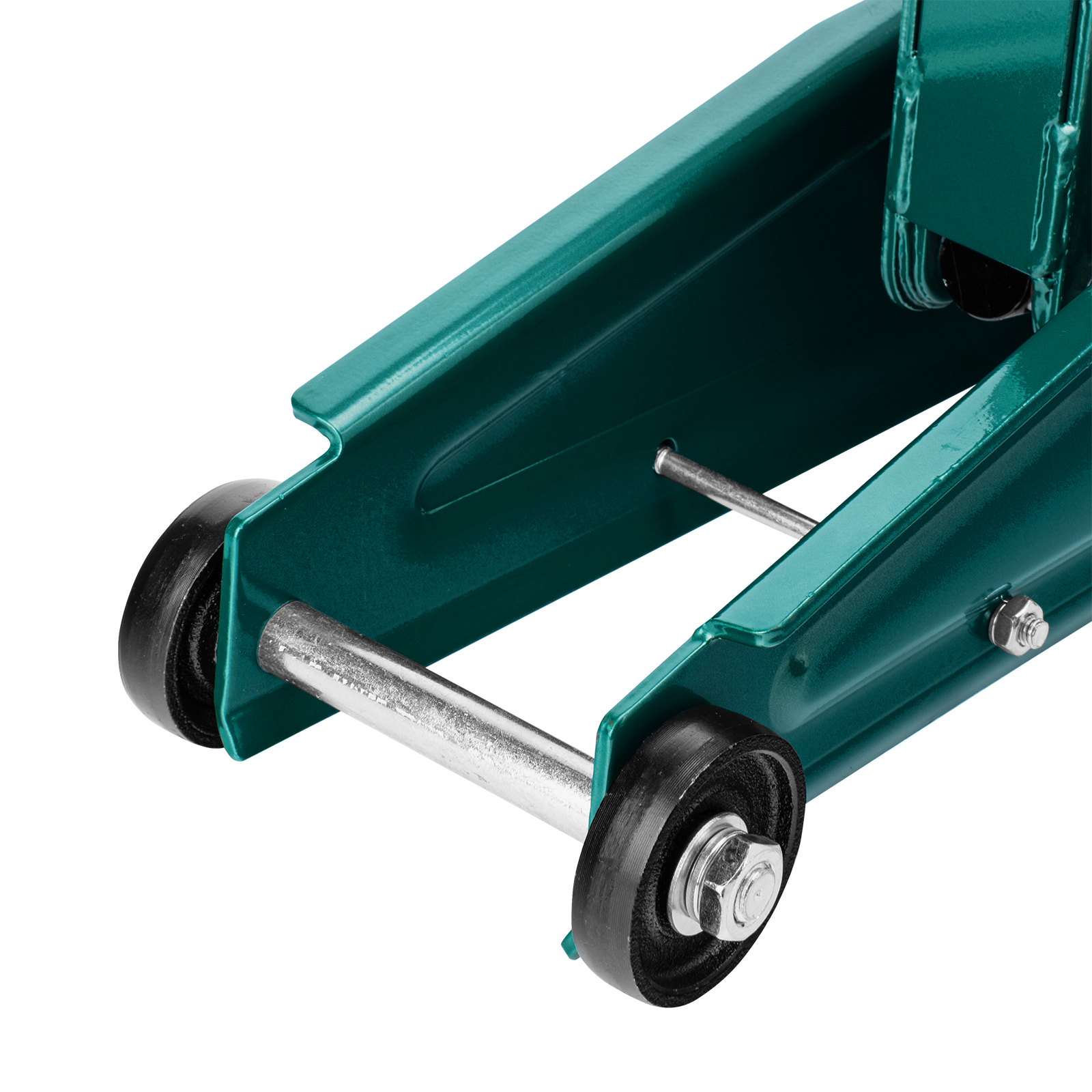- Маневренность — благодаря поворотным колесам домкрат можно быстро подвести под груз.