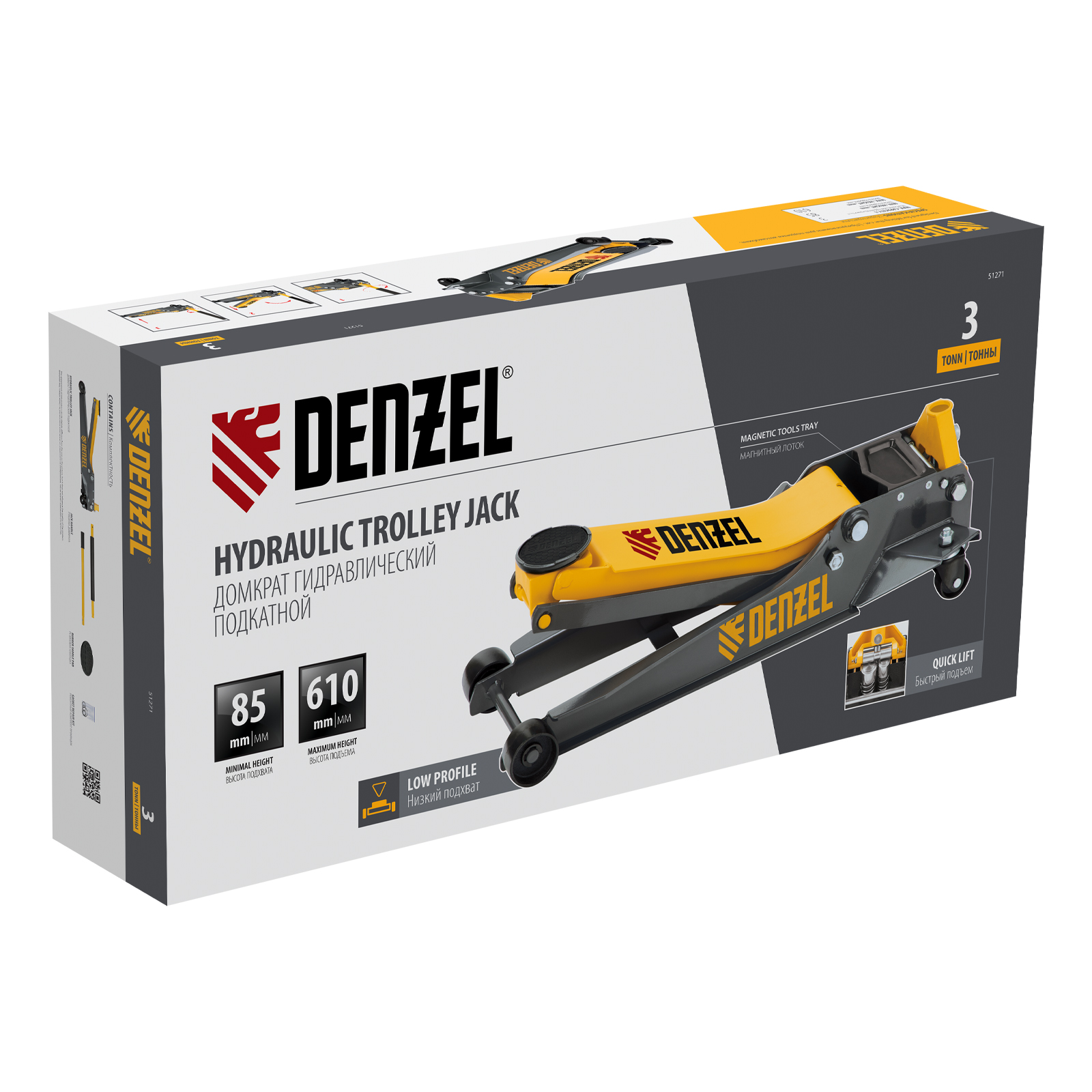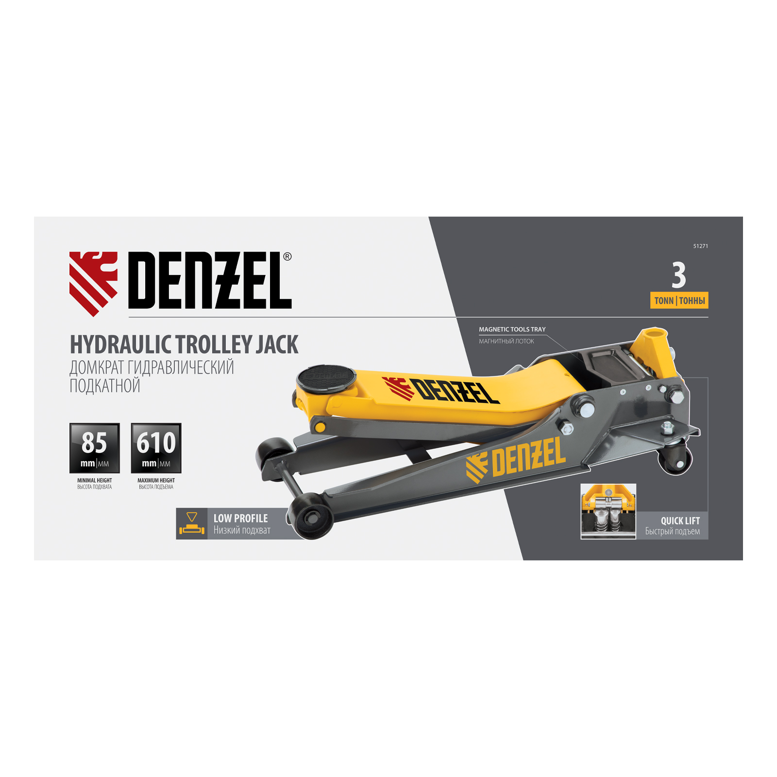 Домкрат гидравлический подкатной, 3 т, 85-610 мм, быстрый подъем, низ. подхват, проф, SUV Denzel в Казани