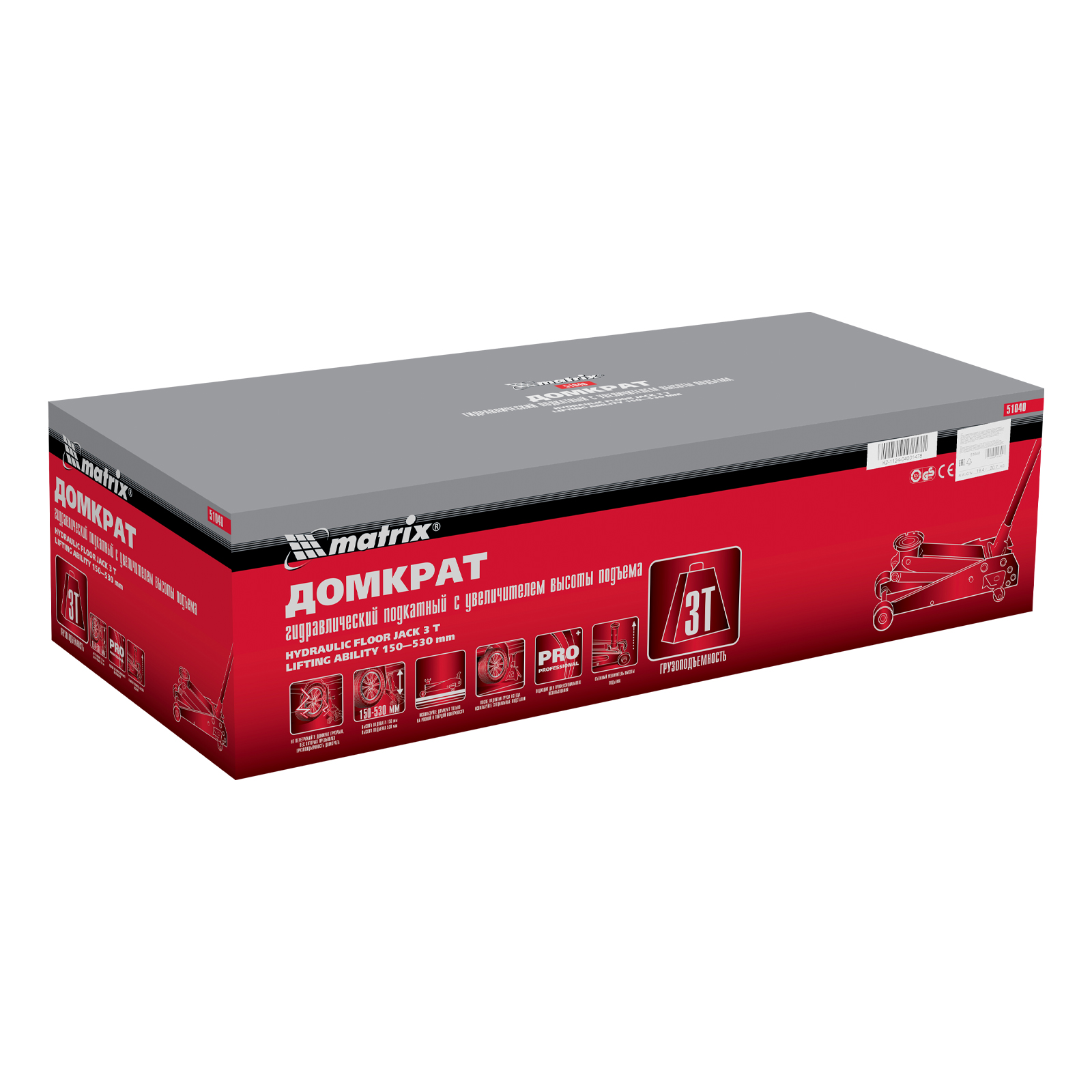 Домкрат гидравлический подкатной, 3 т, высота подъема 150-530 мм Matrix