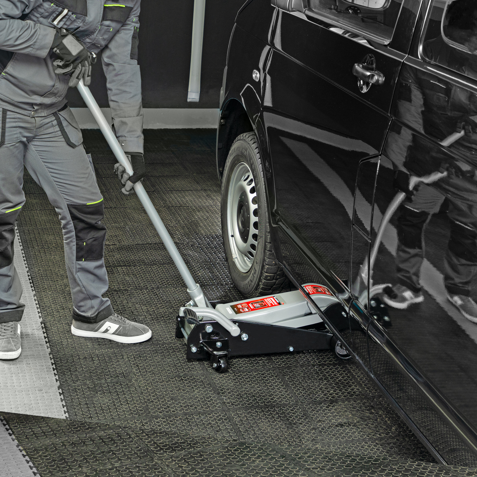 Подкатной гидравлический домкрат Matrix 51045 с педалью, с высотой подхвата 145 мм, — полупрофессиональное гаражное оборудование, способное поднимать груз массой до 3,5 т на высоту до 490 мм. Высота подхвата 145 мм позволяет использовать домкрат для автомашин со стандартным клиренсом. Домкрат будет полезен как в автомастерской, так и в частном гараже.