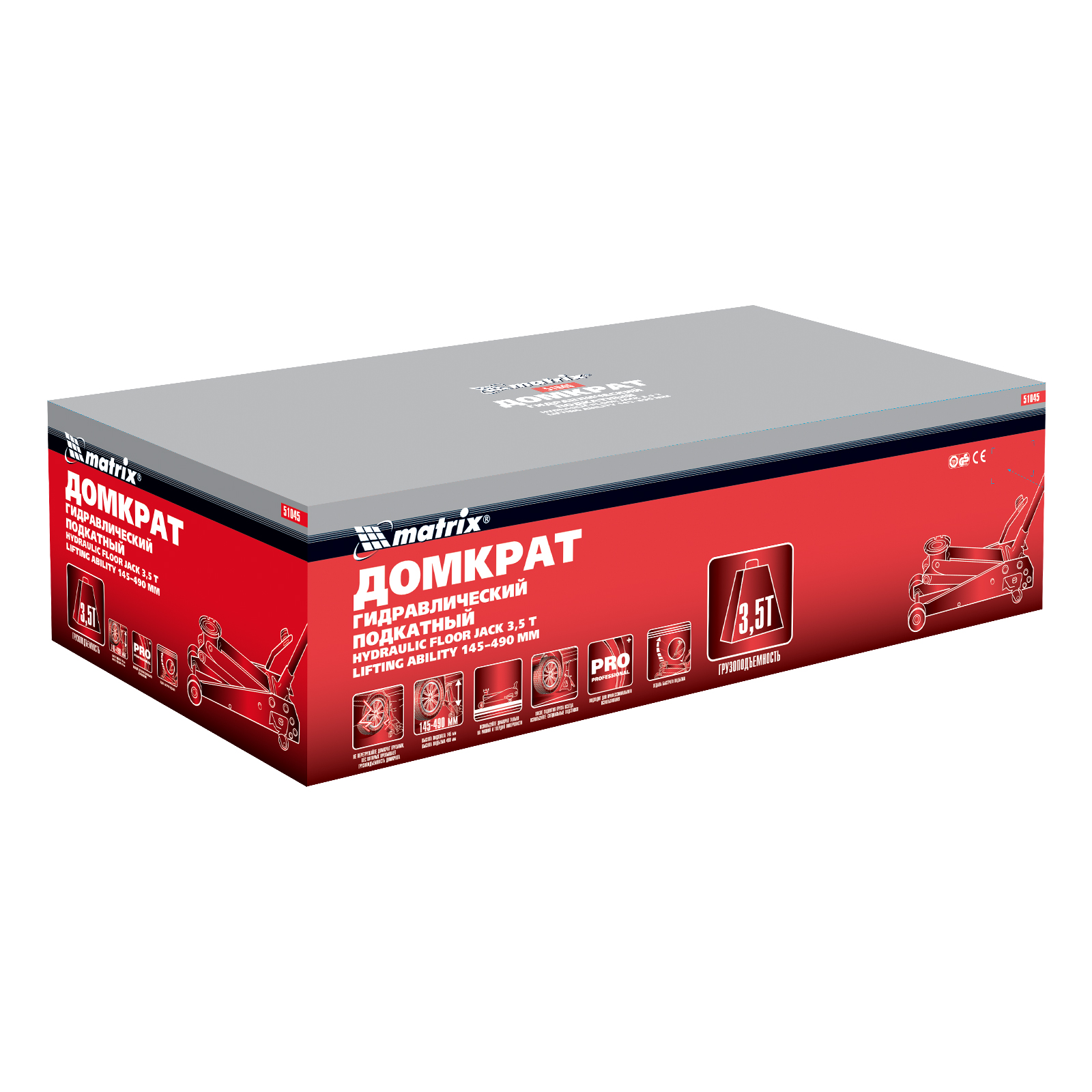 Домкрат гидравлический подкатной, 3.5 т, высота подъема 145-490 мм, с педалью Matrix