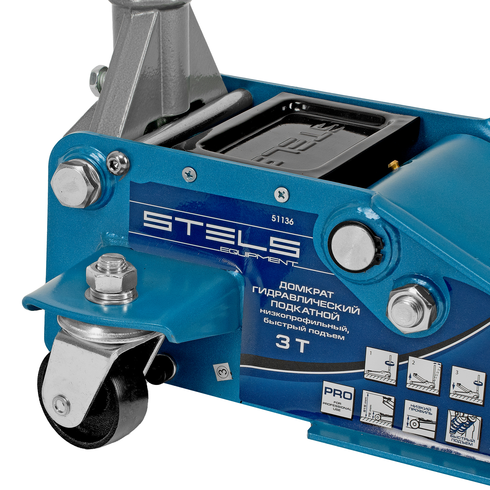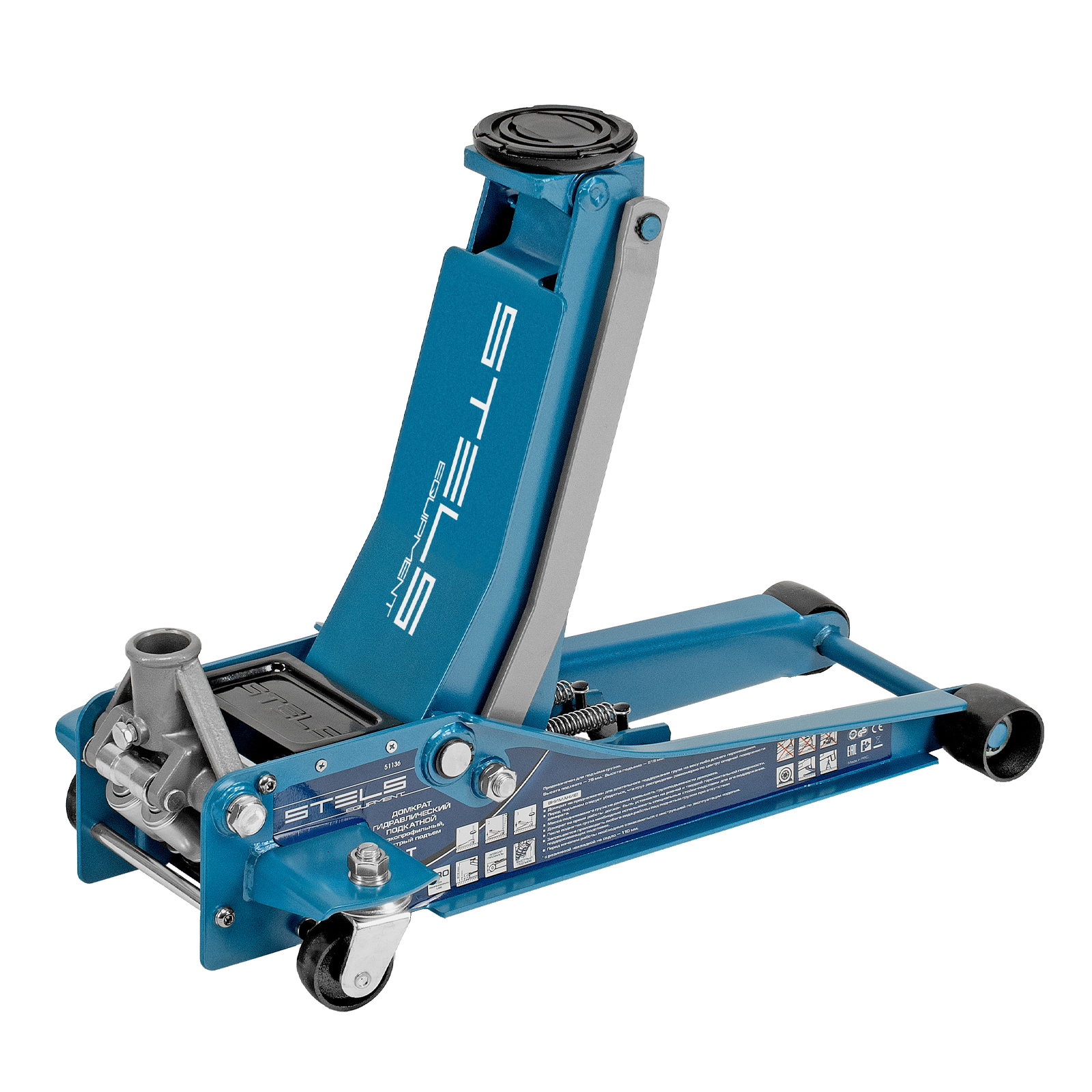 Профессиональный подкатной гидравлический домкрат Stels LOW PROFILE QUICK LIFT 51136 используется для быстрого подъема на высоту 75-515 мм всех типов автомобилей со сверхнизким клиренсом и массой до 3 тонн. Благодаря системе QUICK LIFT для достижения предельной высоты достаточно 12 качков рукоятки. Домкрат подходит для использования на станциях техобслуживания и шиномонтажа.