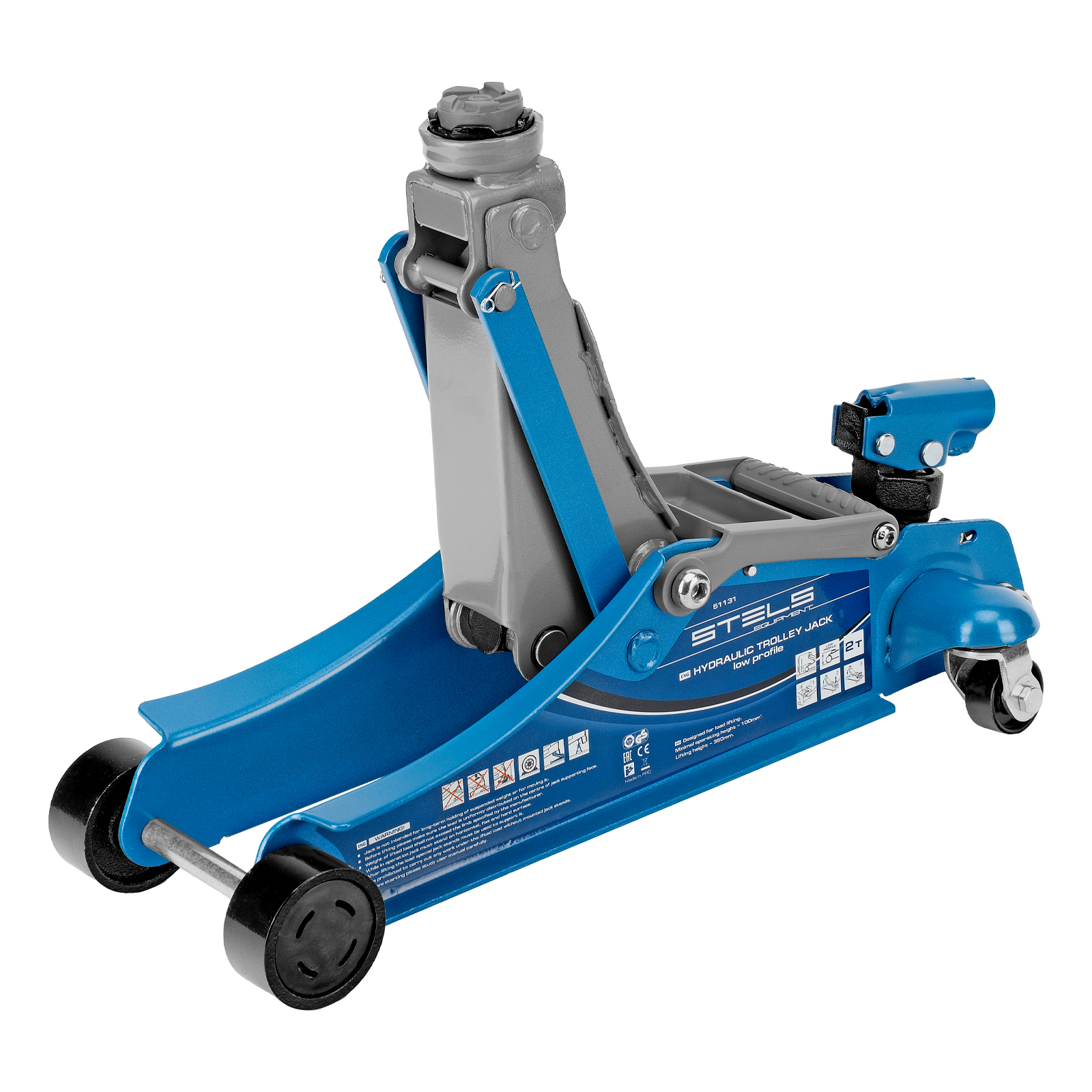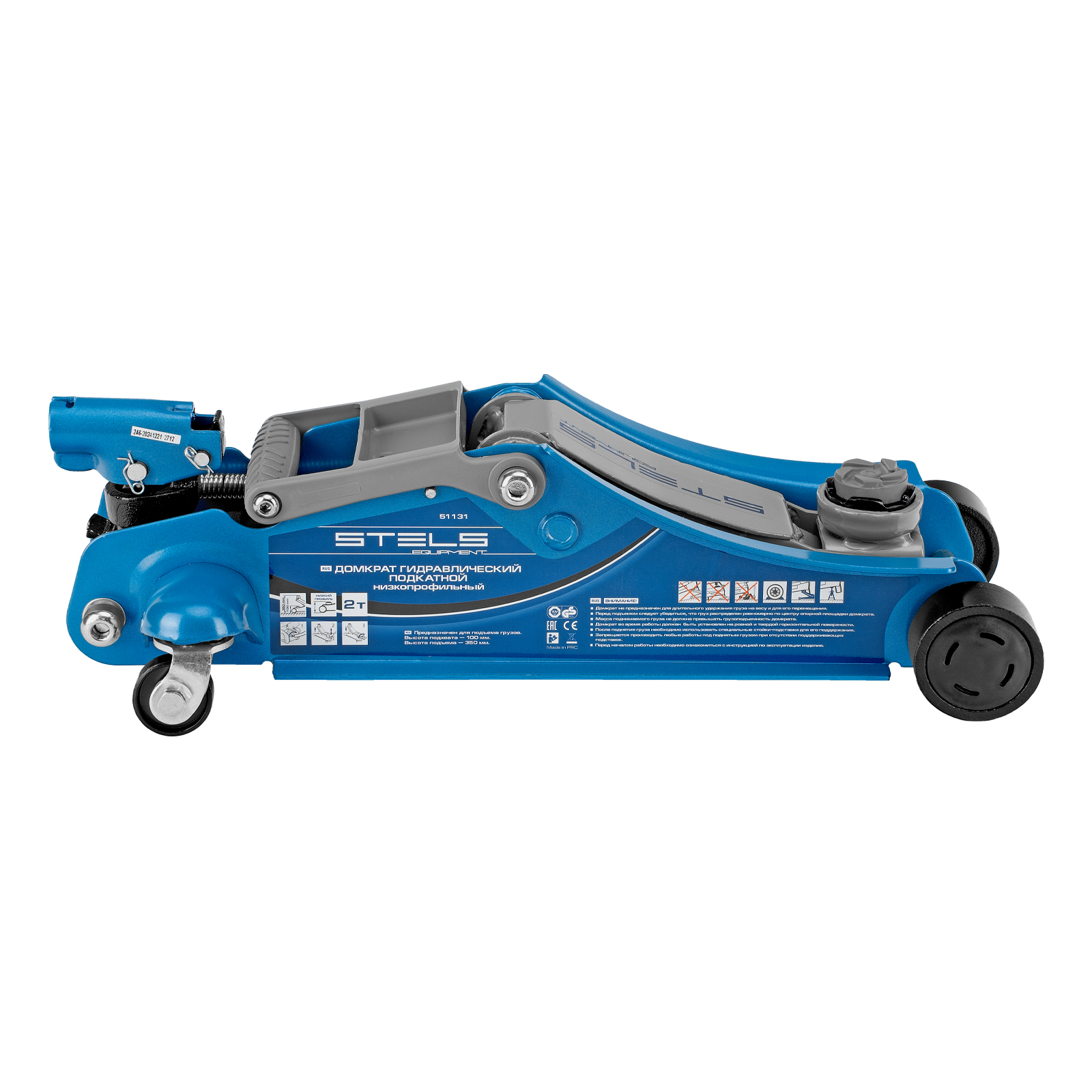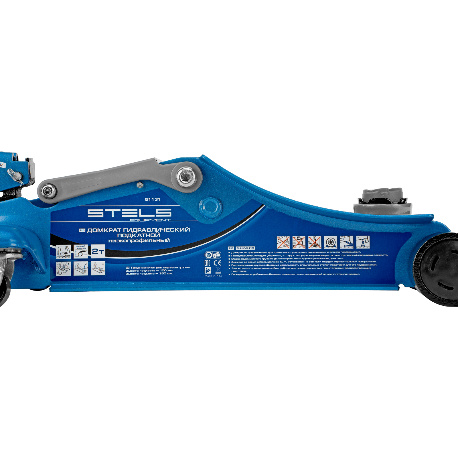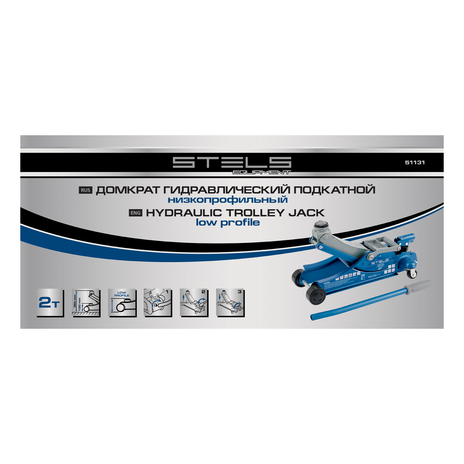 Домкрат гидравлический подкатной, поворотная рукоятка, 2 т, Low Profile, 100-350 мм Stels