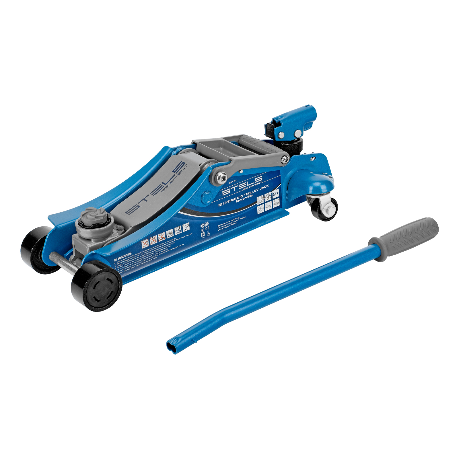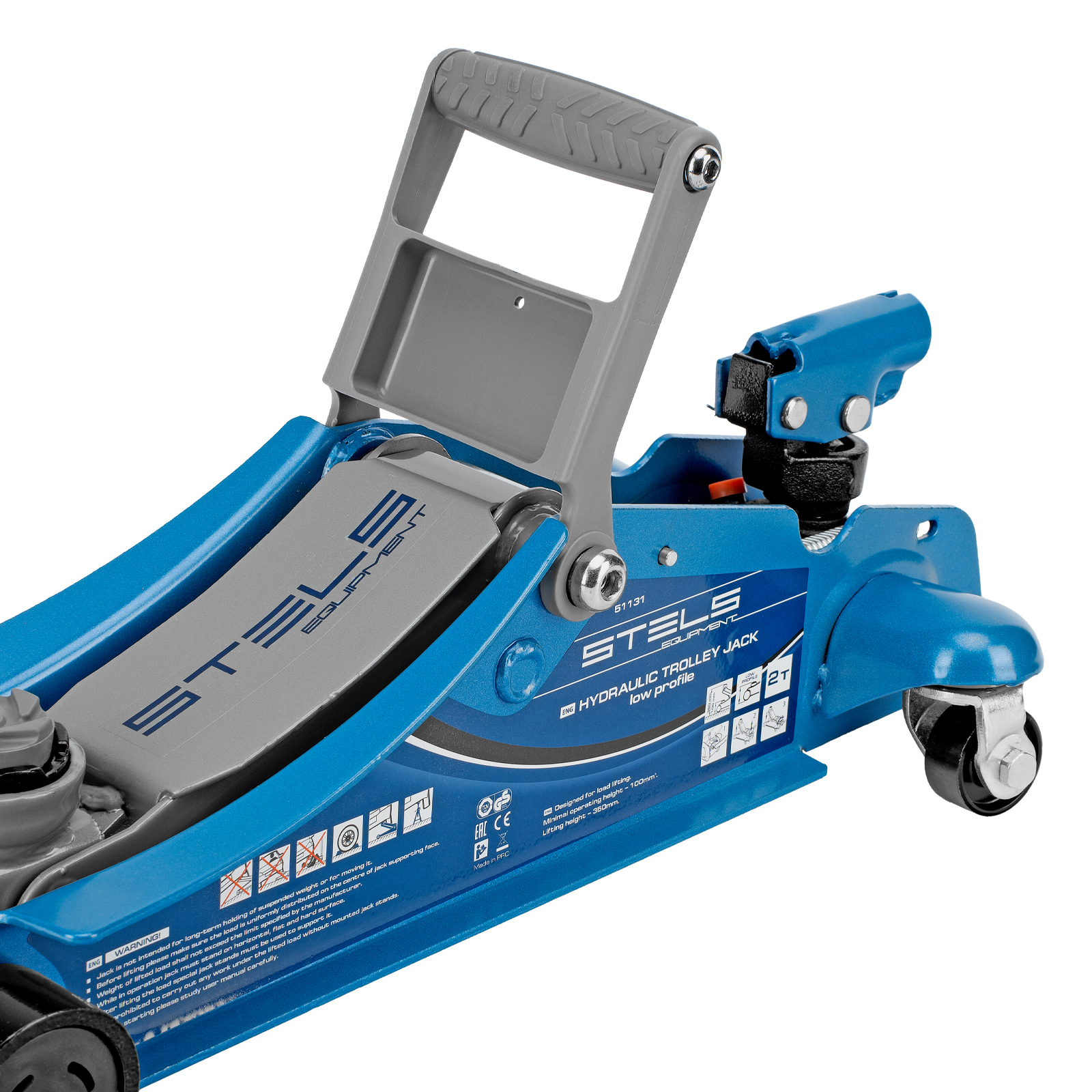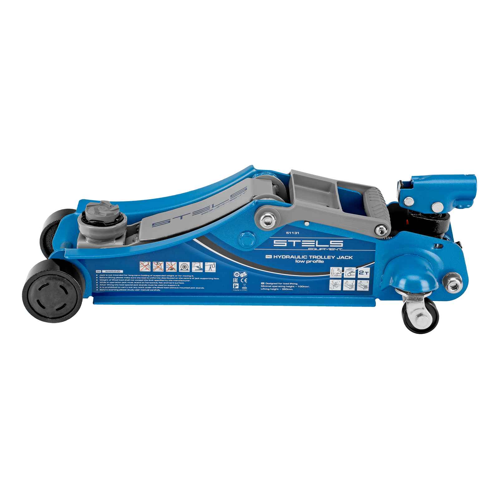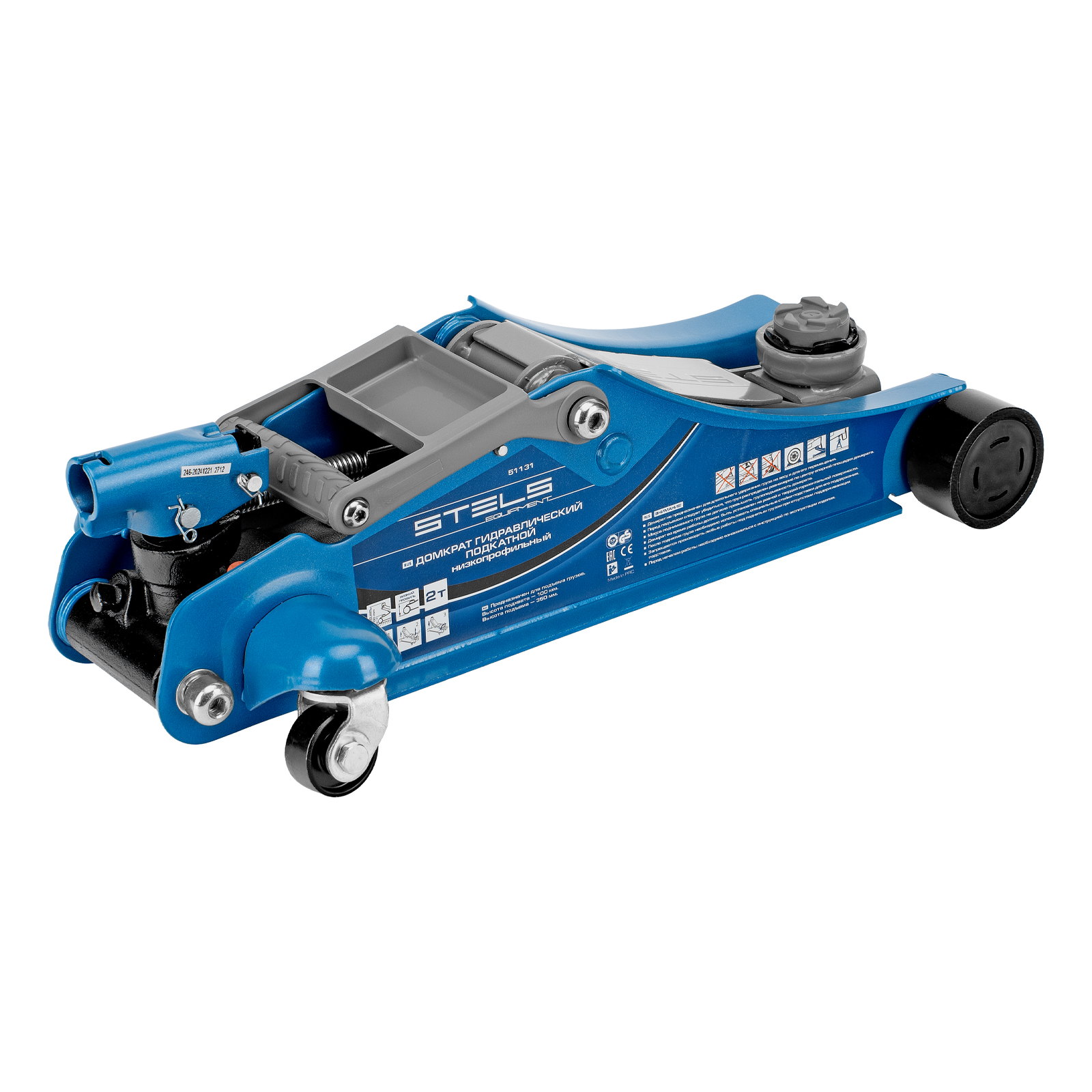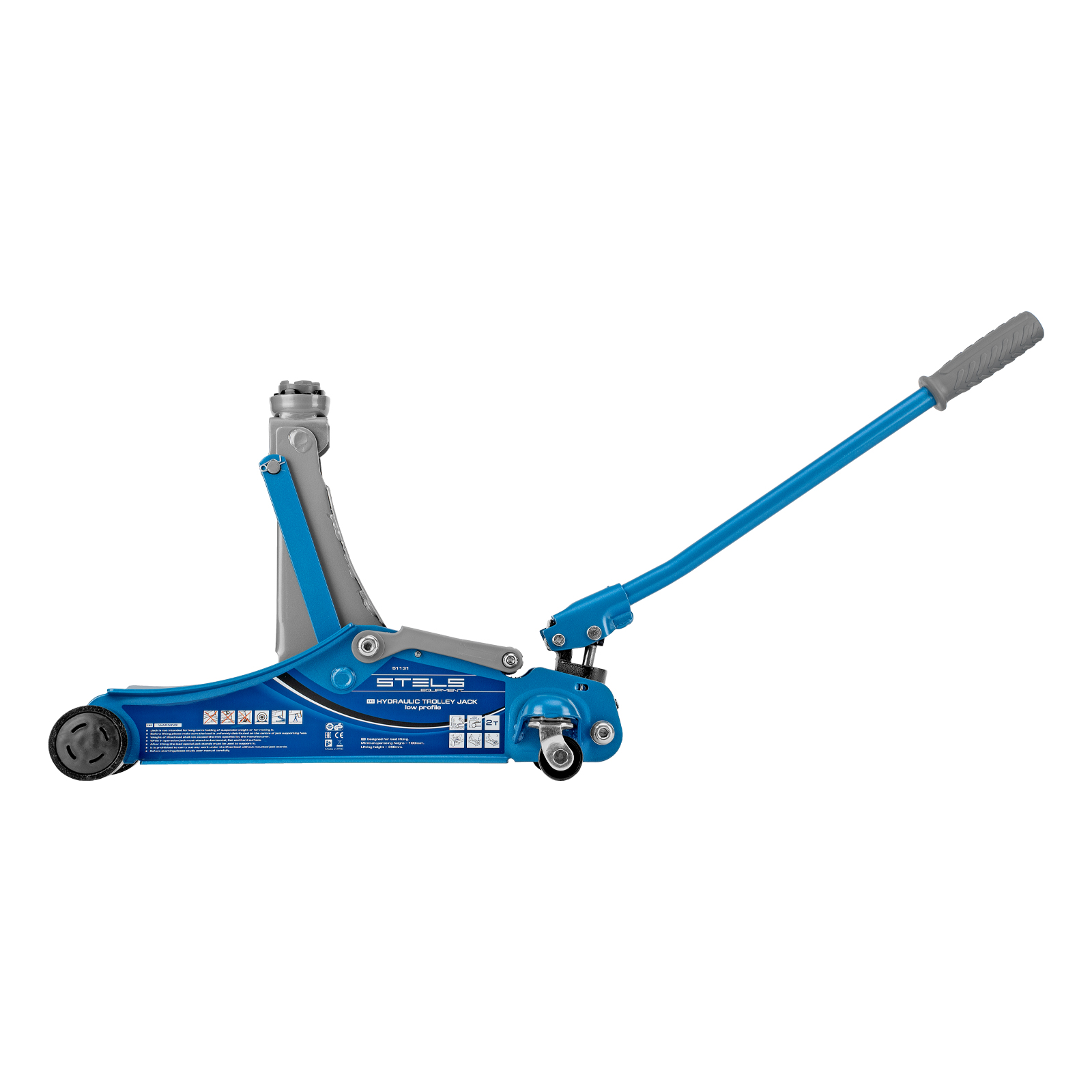 Домкрат гидравлический подкатной, поворотная рукоятка, 2 т, Low Profile, 100-350 мм Stels
