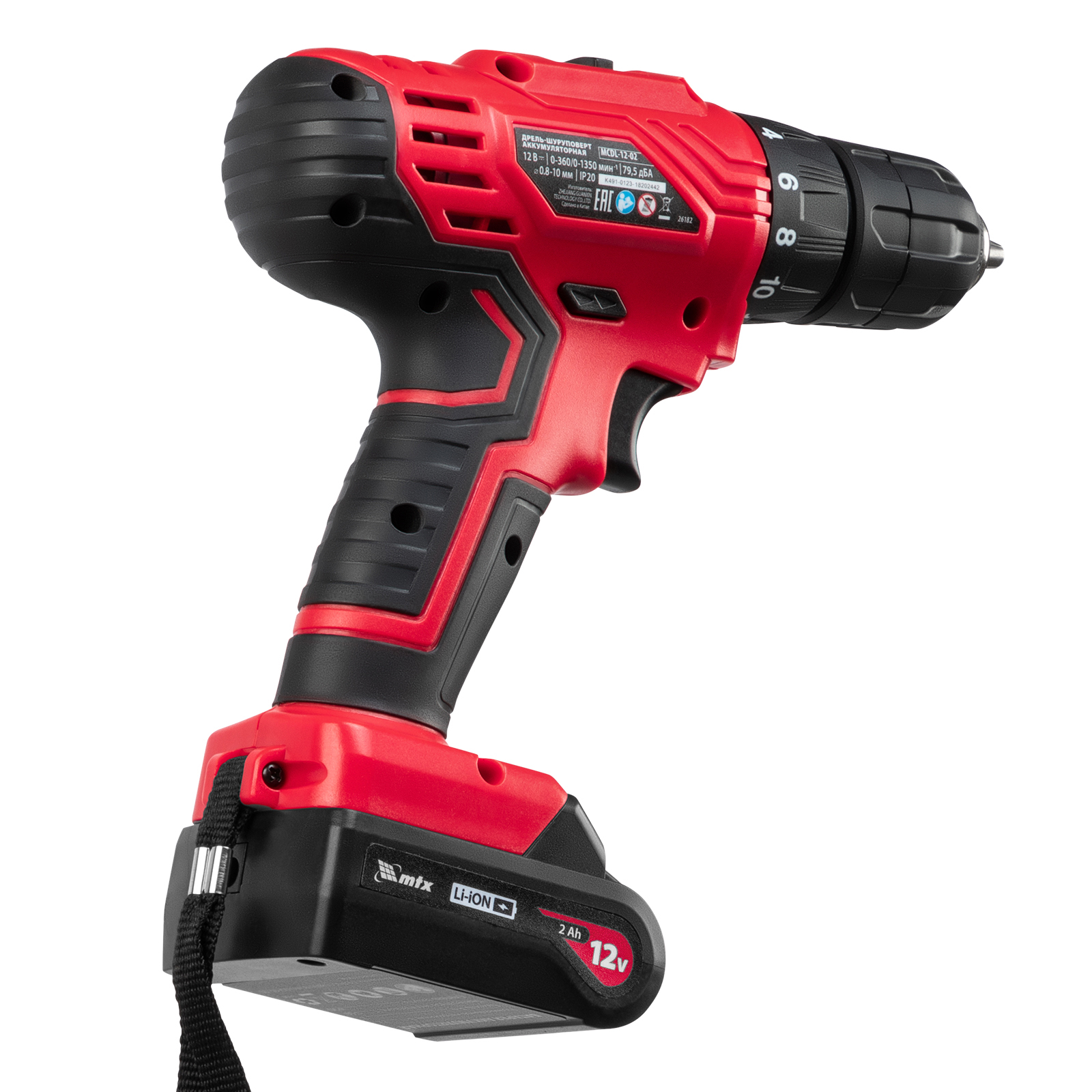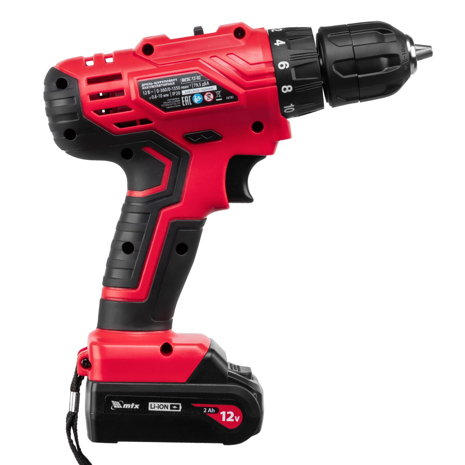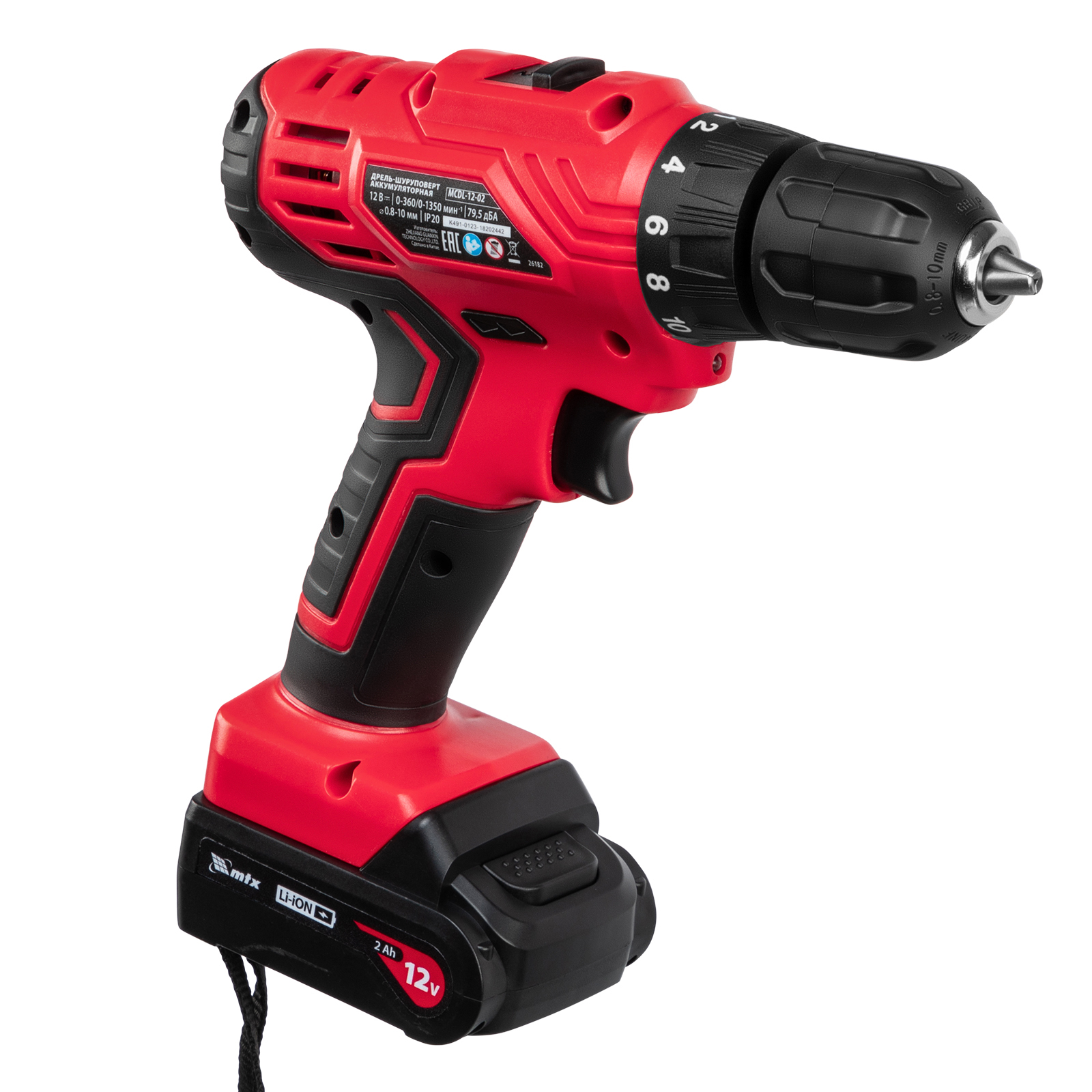 Дрель-шуруповерт аккумуляторная MCDL-12-02, Li-Ion, 12 В, 2 акк. MTX в Казани