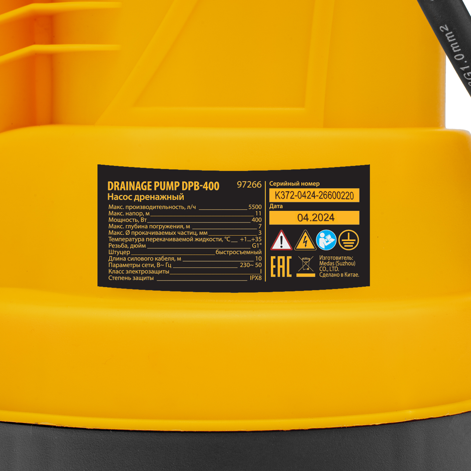 - Степень защиты IPX8 — электрокомпоненты изолированы от попадания воды, что делает погружение насоса в воду абсолютно безопасным.