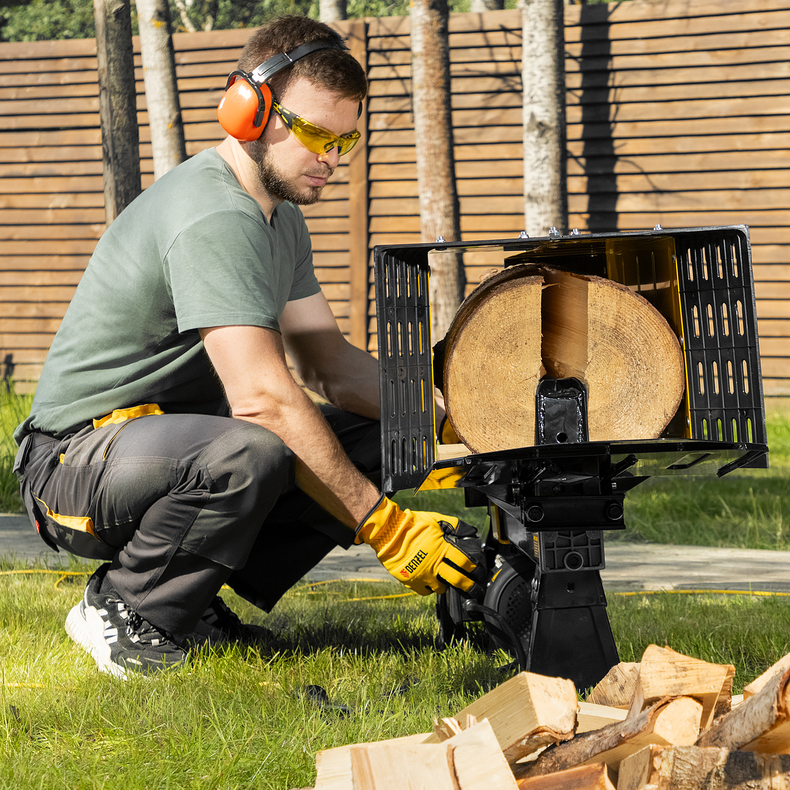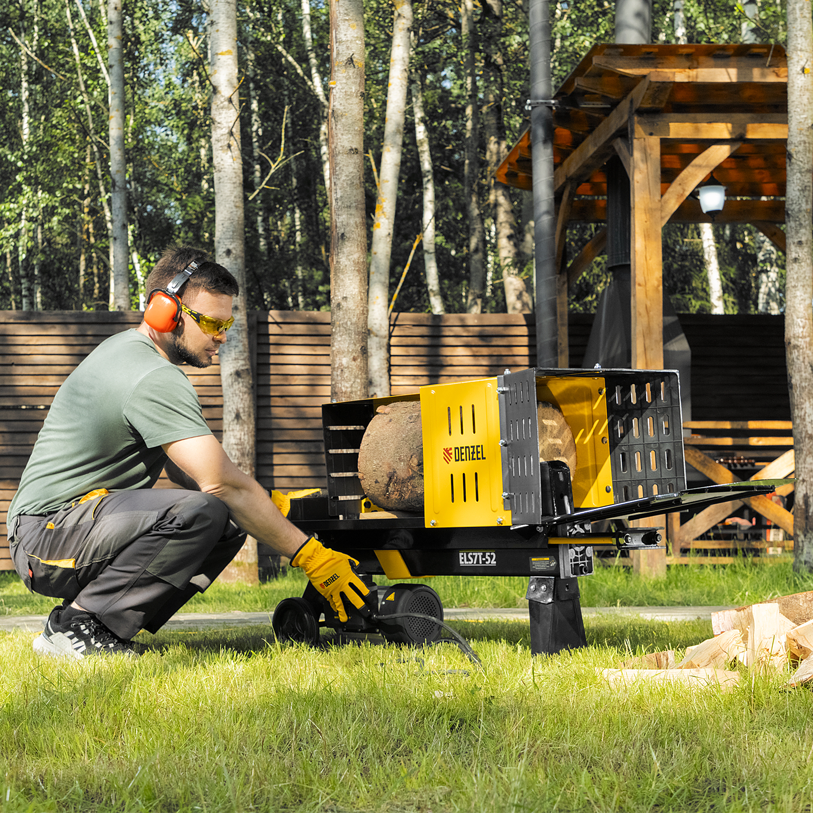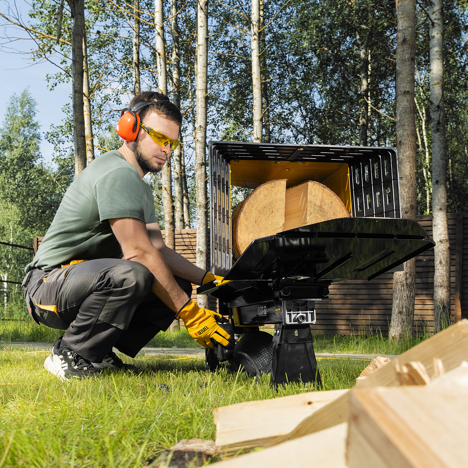 • Устойчивая конструкция — благодаря весу 56 кг и опорам дровокол надежно фиксируется на ровной поверхности и не смещается в процессе работы.
