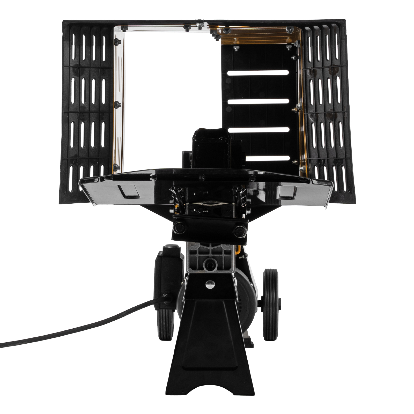 • Мобильность — для удобного перемещения дровокола предусмотрены прочные колеса.