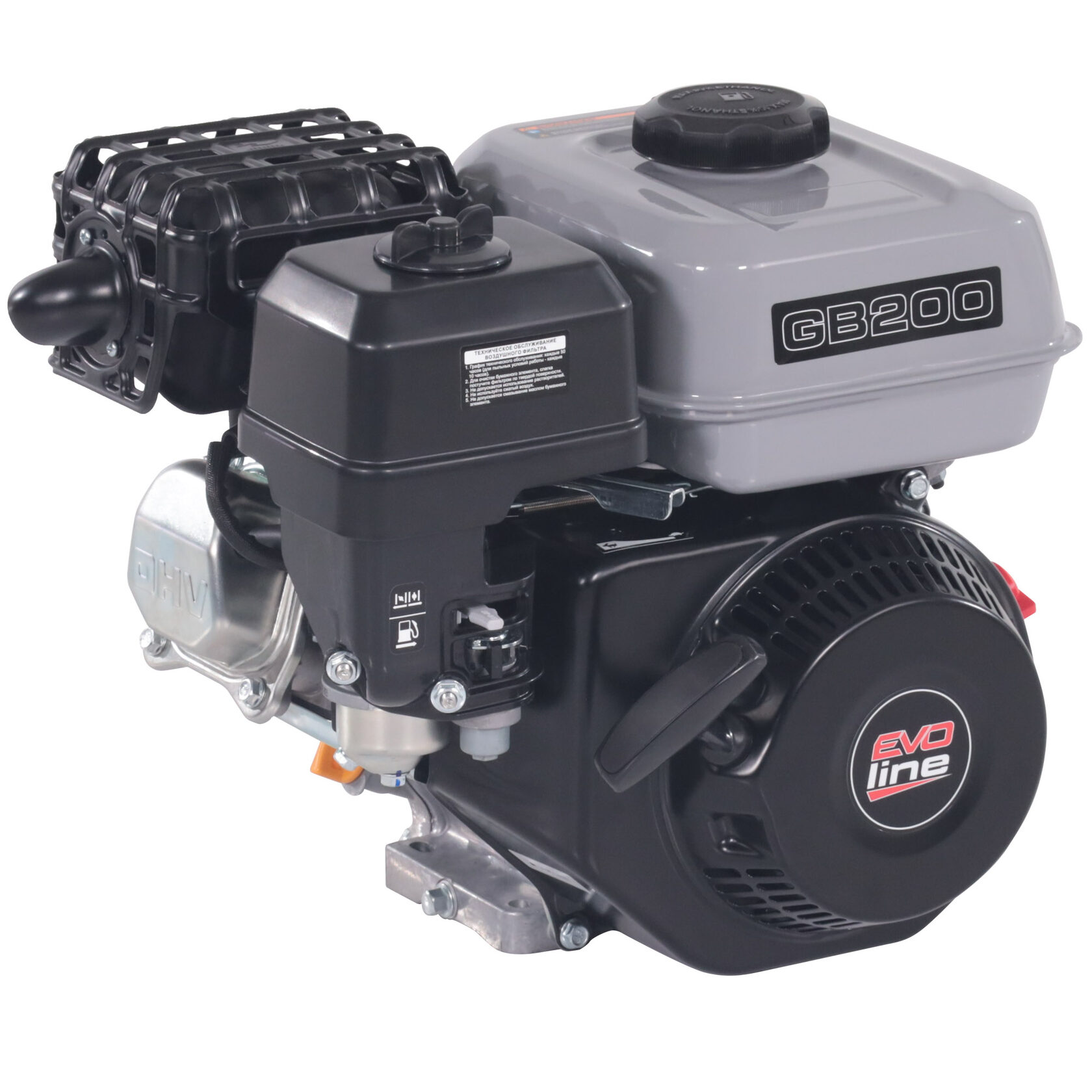 Бензиновый двигатель EVOline GB200 (S-Тип) с рабочим объемом 196 см3 (6,5 л.с.). Этот двигатель является идеальной заменой для 2-х тактного двигателя на различном оборудовании, имеет легкий запуск и низкий уровень шума, высокое качество конструкционных материалов и компонентов, низкий расход топлива и масла.