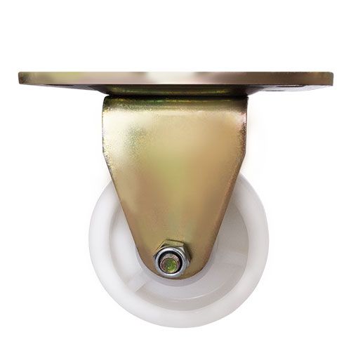 Данное большегрузное нейлоновое колесо предназначено для установки на передвижное оборудование, используемое в пищевой, химической и фармацевтической промышленности. Оно не боится воздействия влаги и различных химически агрессивных веществ, отличается низким коэффициентом трения и высокой износостойкостью. Шариковый подшипник в оси обеспечивает плавное вращение. Неповоротный кронштейн изготовлен из оцинкованной стали, тип крепления — платформа с отверстиями под болты. Максимальная грузоподъемность модели — 400 кг.