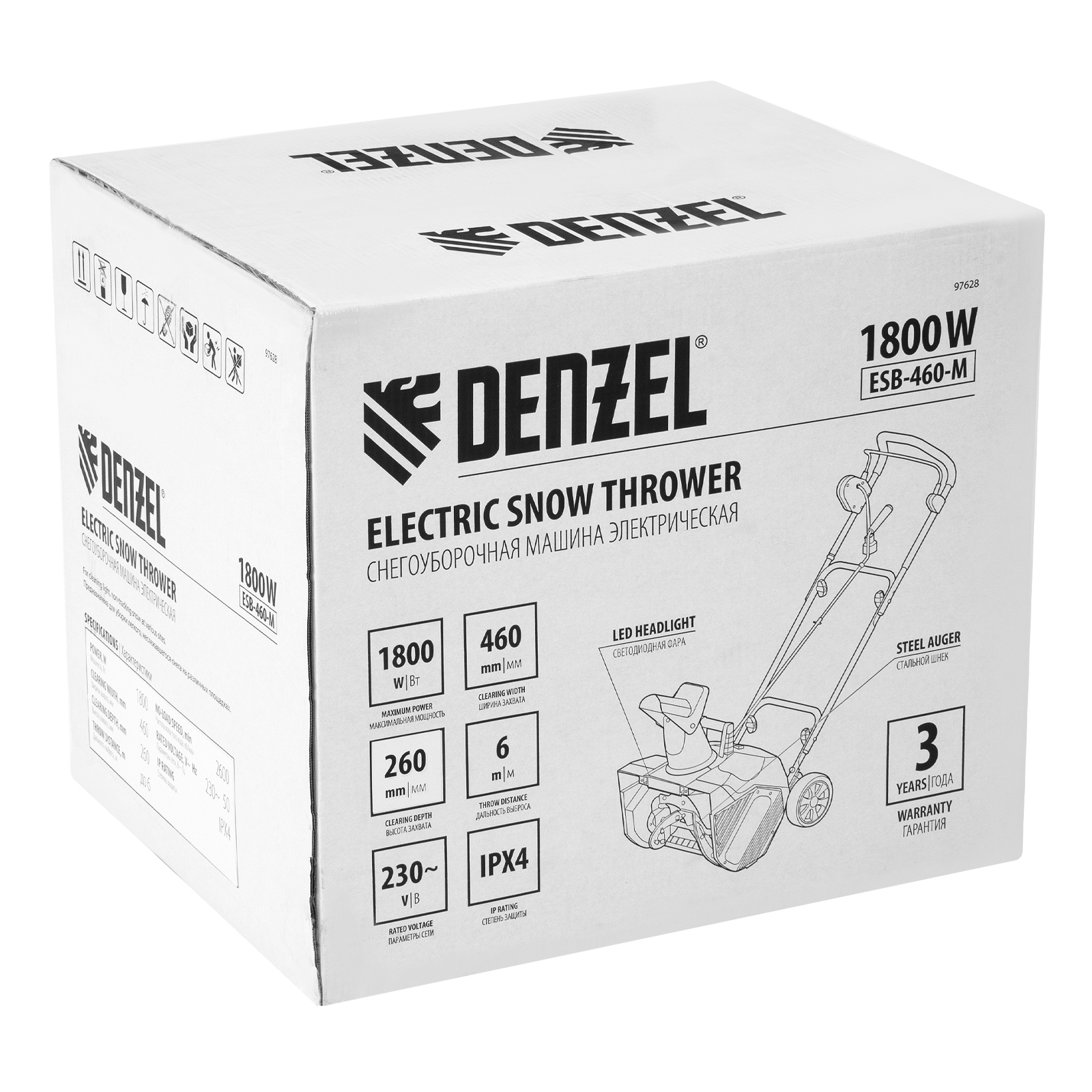 Электрическая снегоуборочная машина ESB-460-M, 1.8 кВт, металлический шнек, LED фара Denzel в Казани