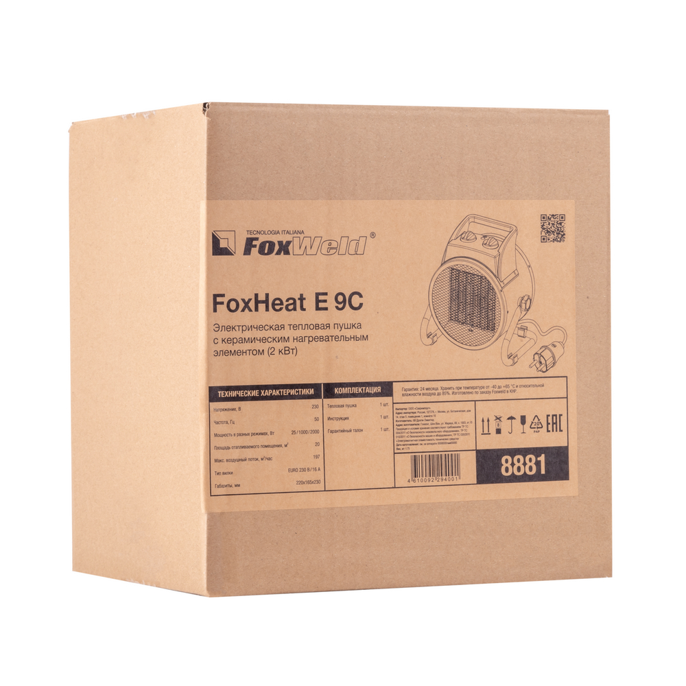 Электрическая тепловая пушка FoxHeat E 9C с керамическим нагревательным элементом (2кВт)
