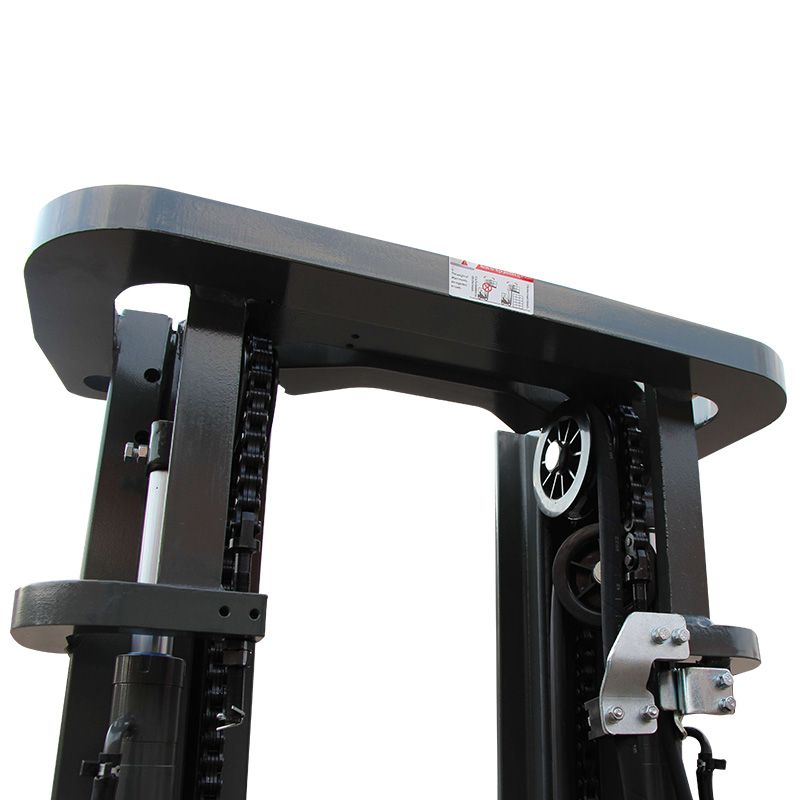 Модель оснащена емким свинцово-кислотным аккумулятором, который обеспечивает длительную автономную работу. По запросу доступна версия с литий-ионной АКБ. Электрический привод делает погрузчик экологичным и безопасным для использования в закрытых помещениях. Пневматические шины обеспечивают плавное движение, снижают вибрации и улучшают проходимость на неровных поверхностях.