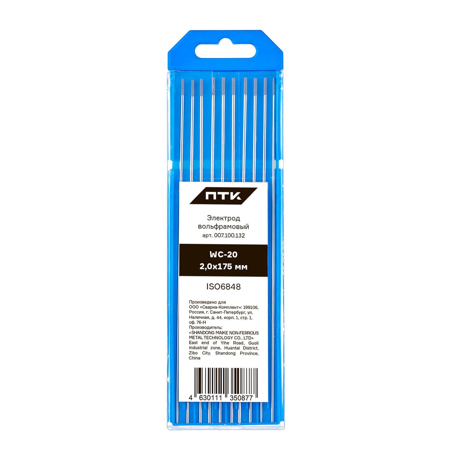 Диаметр электрода 2,0 мм, длина электрода 175 мм. Вольфрам имеет серый цвет торца. Поставляется в пластиковом пенале по 10 штук. В карточке с товаром указана цена за 1 вольфрамовый электрод.