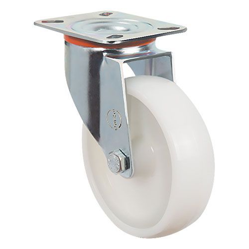 Колесная опора EMES EM01 ZKZ 200 устанавливается на платформенные тележки для пищевой промышленности, передвижное медицинское оборудование и технику. Нейлоновый обод хорошо распределяет нагрузку. Поворотный кронштейн изготовлен из оцинкованной стали. Максимальная грузоподъемность модели составляет 230 кг. Рабочий температурный диапазон — от -20 до +70 °С.