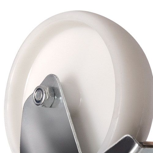 Колесная опора EMES EM04 ZKZ 125 F устанавливается на платформенные тележки для пищевой промышленности, передвижное медицинское оборудование и технику. Нейлоновый обод хорошо распределяет нагрузку. Поворотный кронштейн с тормозом изготовлен из оцинкованной стали. Тип крепления — под болт. Максимальная грузоподъемность модели составляет 160 кг. Рабочий температурный диапазон — от -20 до +70 °С.