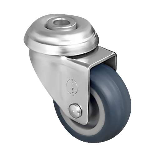 Аппаратное колесо EP04 MKT 75 предназначено для установки на торговое оборудование, больничную мебель, медицинскую аппаратуру и т. п. Шинка выполнена из серой резины, кронштейн — из оцинкованной стали, а обод — из полипропилена. Колесо имеет диаметр 75 мм, ширину обода 25 мм и работает в температурном диапазоне от -20 до +60 °С. Грузоподъемность модели — 50 кг.