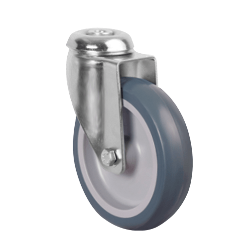 Аппаратное колесо ER04 MKT 125 предназначено для установки на торговые, медицинские, лабораторные, гостиничные тележки и прочее передвижное оборудование, которое используется в условиях повышенных санитарных требований. Обод в модели изготовлен из прочного полипропилена, шинка — из серой резины. Диаметр колеса составляет 125 мм, максимальная нагрузка — 90 кг, температурный режим использования — от -20 до +60 °С.