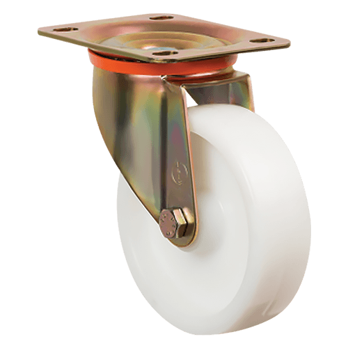 Большегрузная поворотная колесная опора EZ01HBZ100 рассчитана на серьезные эксплуатационные нагрузки, выдерживает до 250 кг. Колесо выполнено из нейлона, кронштейн — из оцинкованной стали. Модель рекомендуется для установки на передвижное оборудование, используемое в пищевой и химической промышленности, где важны стойкость к агрессивным средам и легкость санитарной обработки. Температурный режим эксплуатации составляет от -20 до +70 °С.