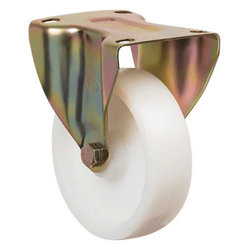 Большегрузная неповоротная колесная опора EZ02HBZ150 рассчитана на серьезные эксплуатационные нагрузки, выдерживает до 350 кг. Колесо выполнено из нейлона, кронштейн — из оцинкованной стали. Модель рекомендуется для установки на передвижное оборудование, используемое в пищевой и химической промышленности, где важны стойкость к агрессивным средам и легкость санитарной обработки. Температурный режим эксплуатации составляет от -20 до +70 °С.