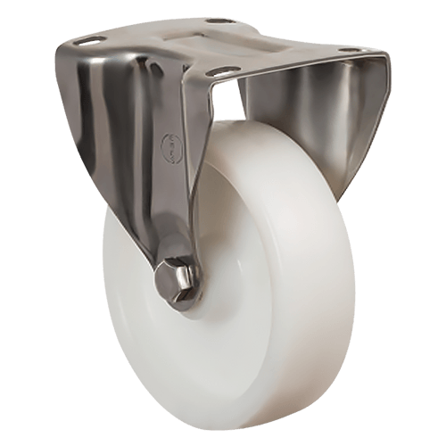 Неповоротное большегрузное колесо EZ02HKZ100INOX изготовлено из прочного нейлона, что обеспечивает стойкость к воздействию различных химических веществ и влаги, позволяет выдерживать высокие нагрузки без деформации. Максимальная грузоподъемность модели составляет 250 кг. Кронштейн из высококачественной нержавеющей стали устойчив к коррозии.