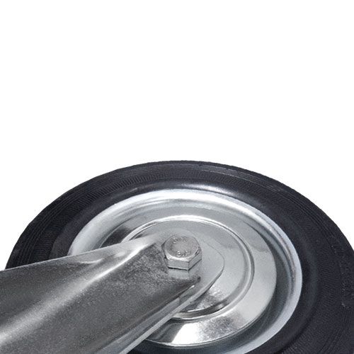 Колесо промышленное неповоротное FС80 предназначено для мусорных контейнеров, промышленного оборудования, платформенных тележек, лесов и строительных вышек-тур. Шинка выполнена из литой, черной резины. Колесо имеет стальной оцинкованный обод. В оси установлен роликовый подшипник. Кронштейн с платформенным креплением изготовлен из оцинкованной стали. Отличается средней устойчивостью к воздействию химических веществ. Может передвигаться по грубой поверхности и эксплуатироваться в условиях влажной среды.