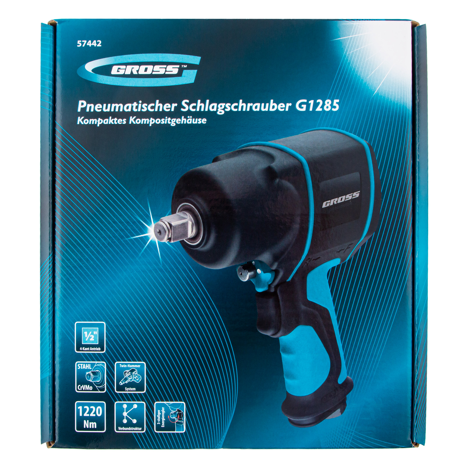 Гайковерт пневматический ударный G1285, 1/2, Twin Hammer, 1220Нм, 6500 об/мин, композитный Gross