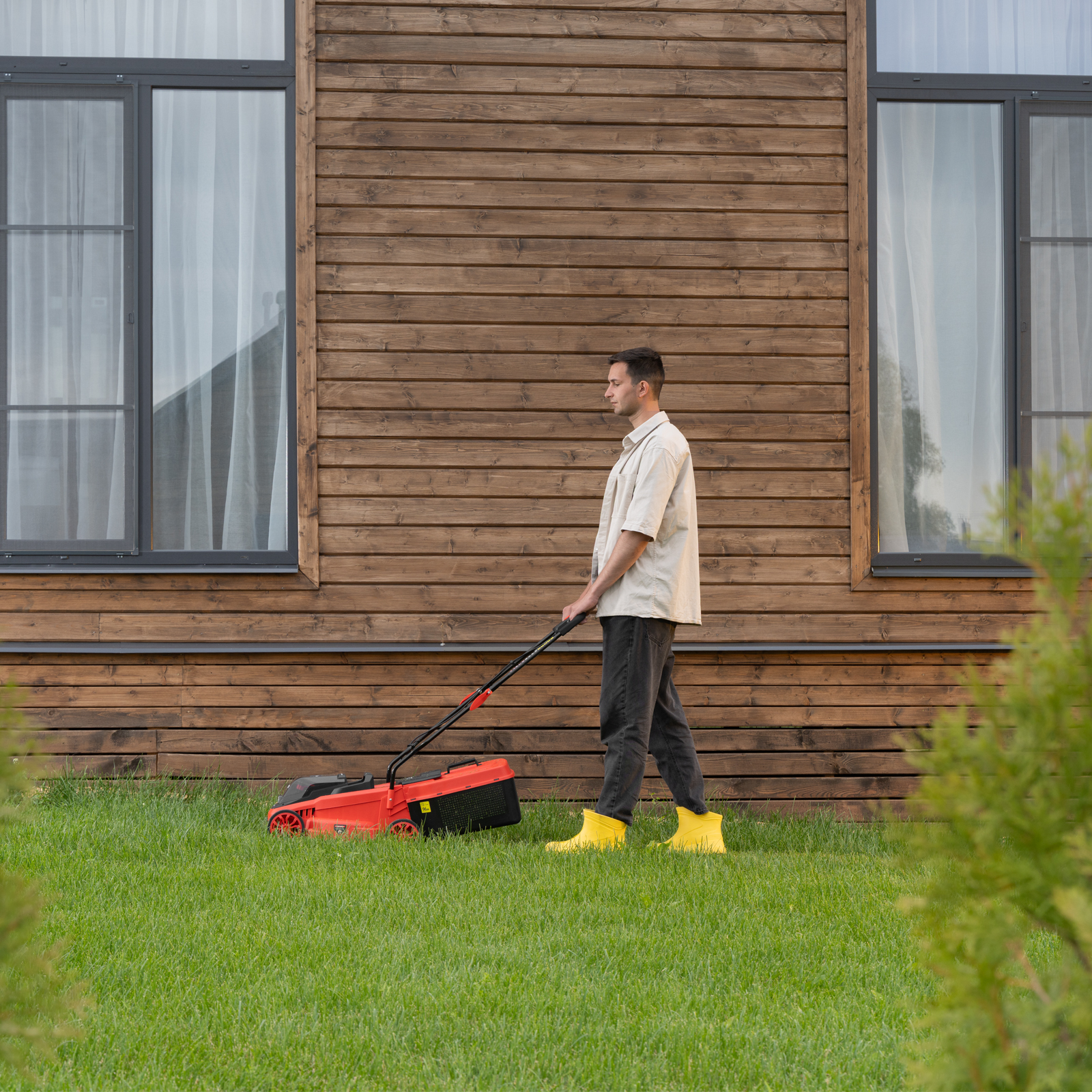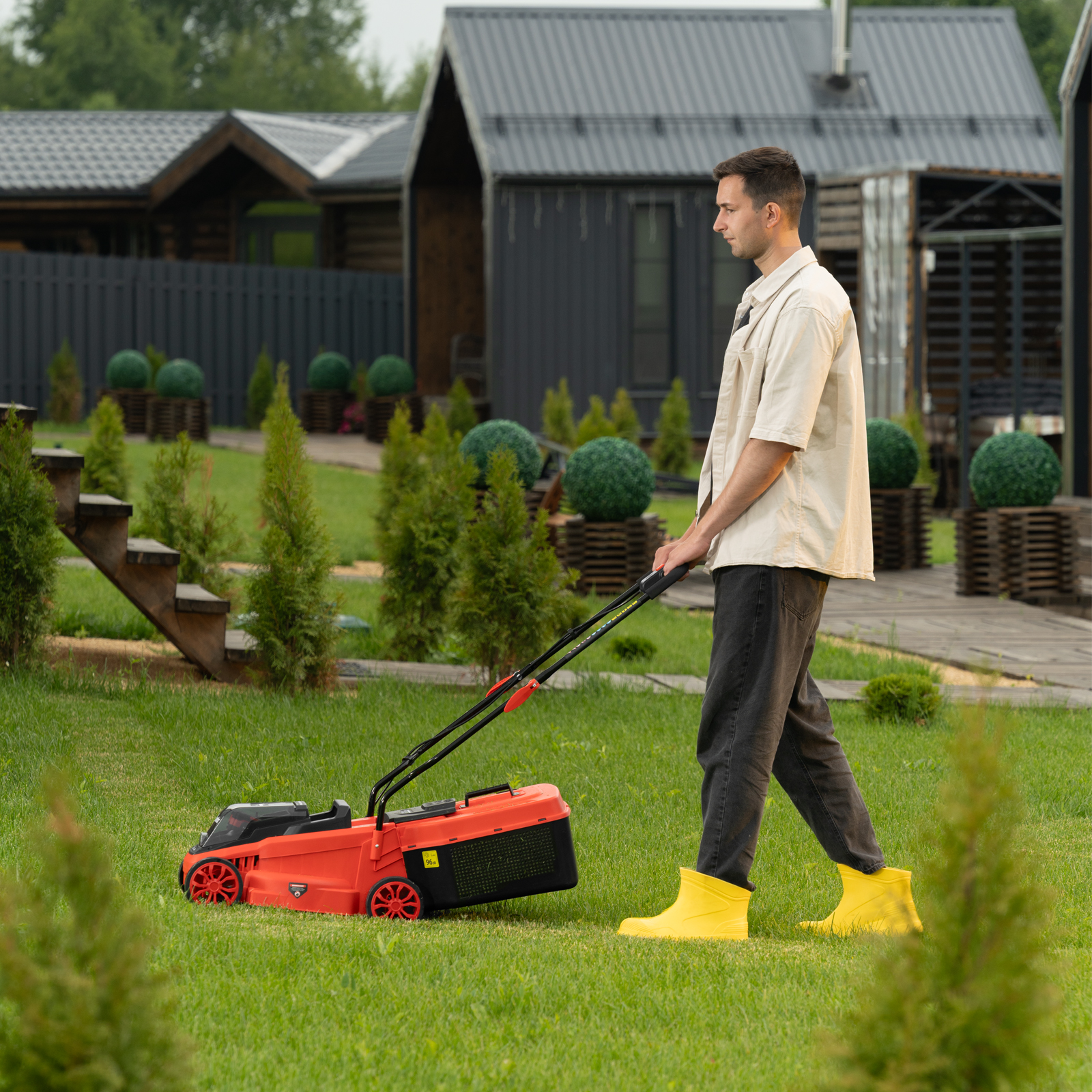 - Компактность — косилка не занимает много места в зоне хранения.