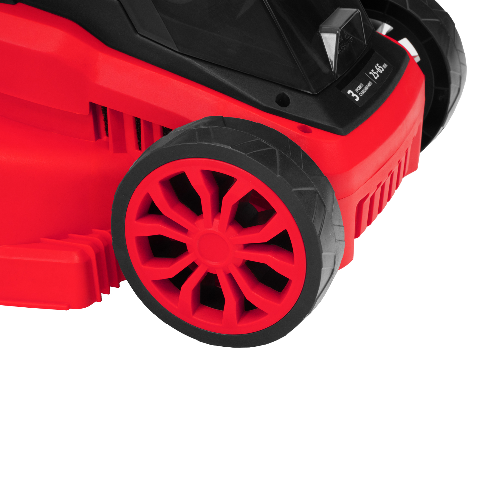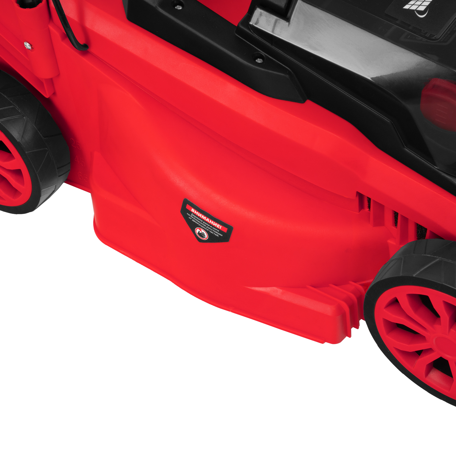 - Небольшой вес 9,6 кг — пластиковая дека не утяжеляет конструкцию, газонокосилку легко направлять.