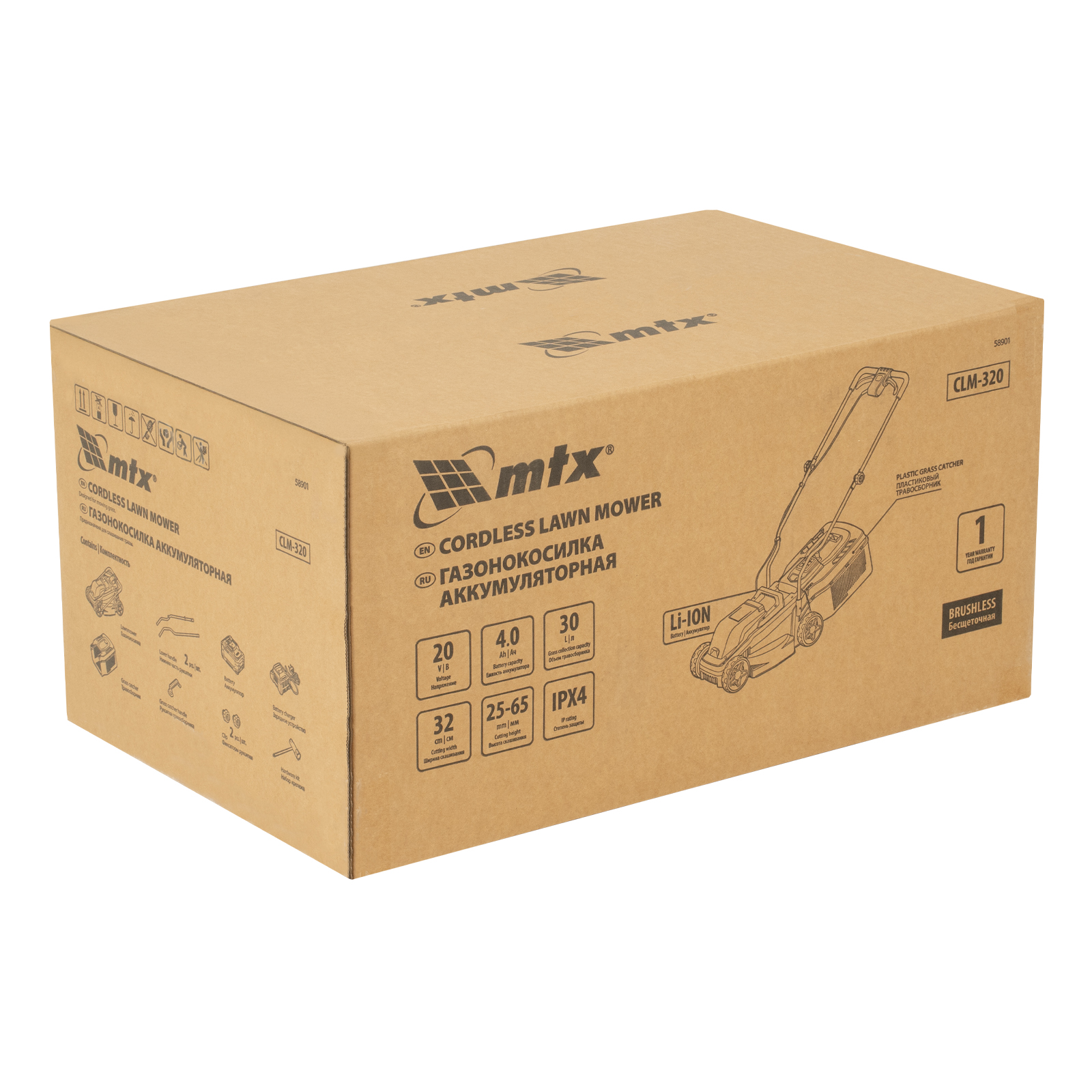 Аккумуляторная газонокосилка MTX CLM-320 58901 с бесщеточным двигателем и травосборником объемом 30 л работает от аккумулятора Li-Ion с рабочим напряжением 20 В и обеспечивает ширину скашивания 320 мм. Высоту скашиваемой травы можно регулировать: предусмотрено 3 уровня в диапазоне 25-65 мм. Уровень шума снижен, поэтому во время работы газонокосилки не возникает ощущение дискомфорта. Газонокосилка оптимальна для ухода за садом, огородом или небольшим приусадебным участком.