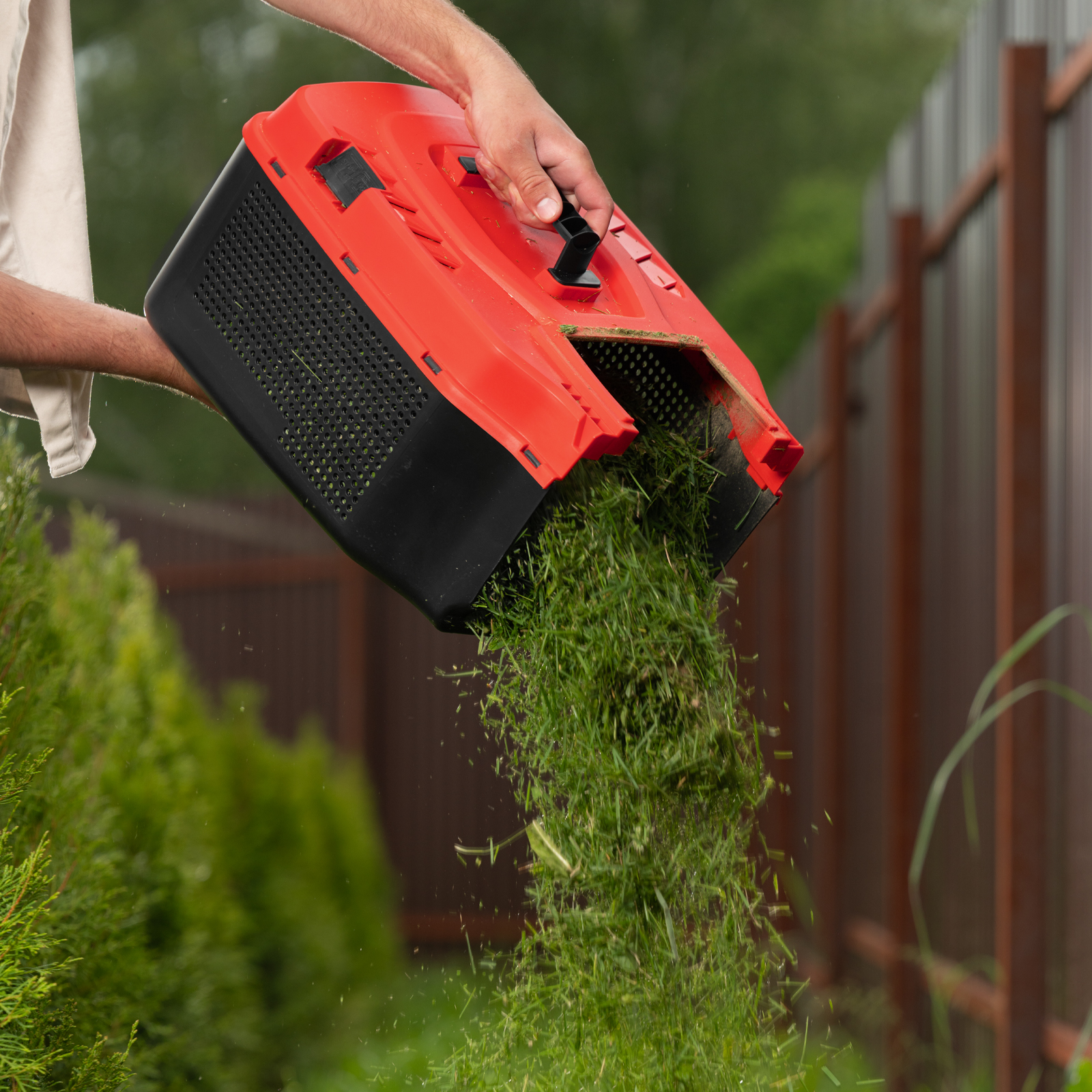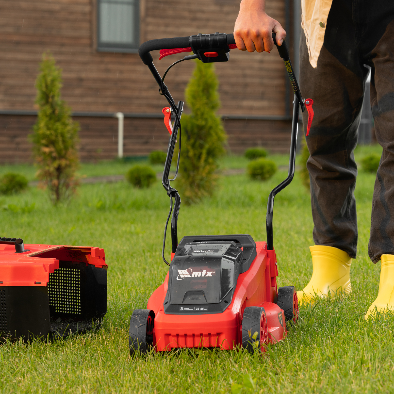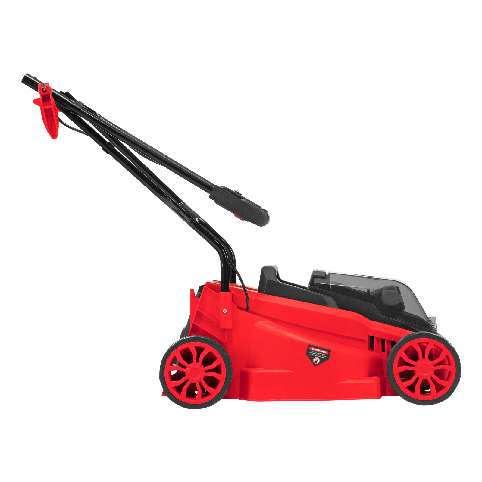 - Простой уход — пластиковый травосборник удобно опустошать и очищать.