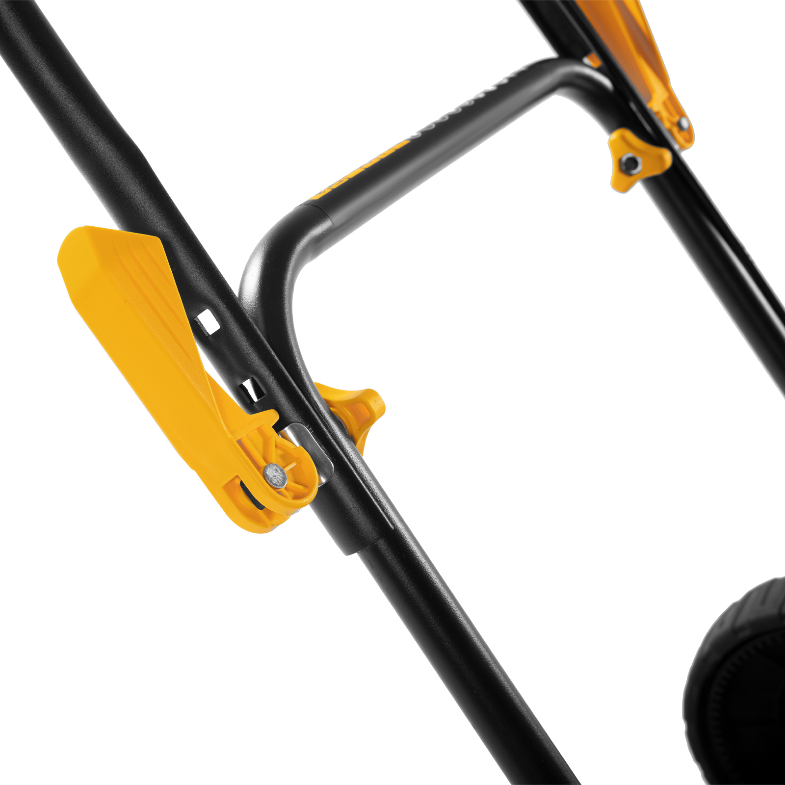 - Комфортная работа — рукоятка регулируется по высоте, а за счет покрытия из вспененной резины снижает уровень вибраций.