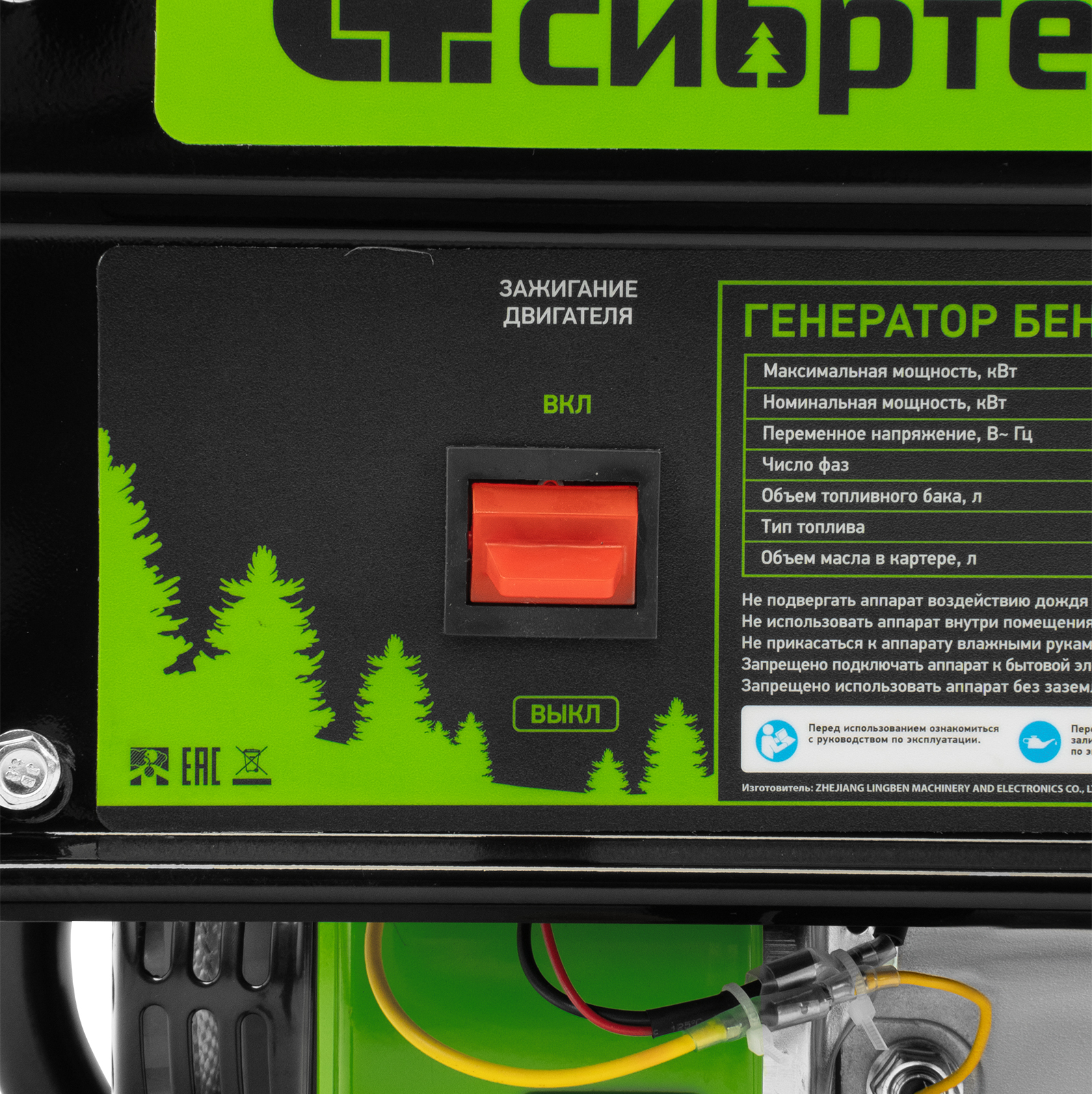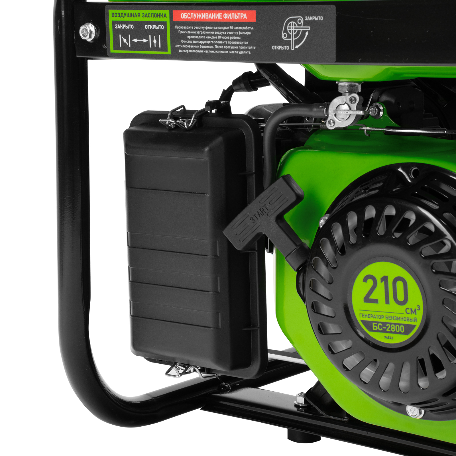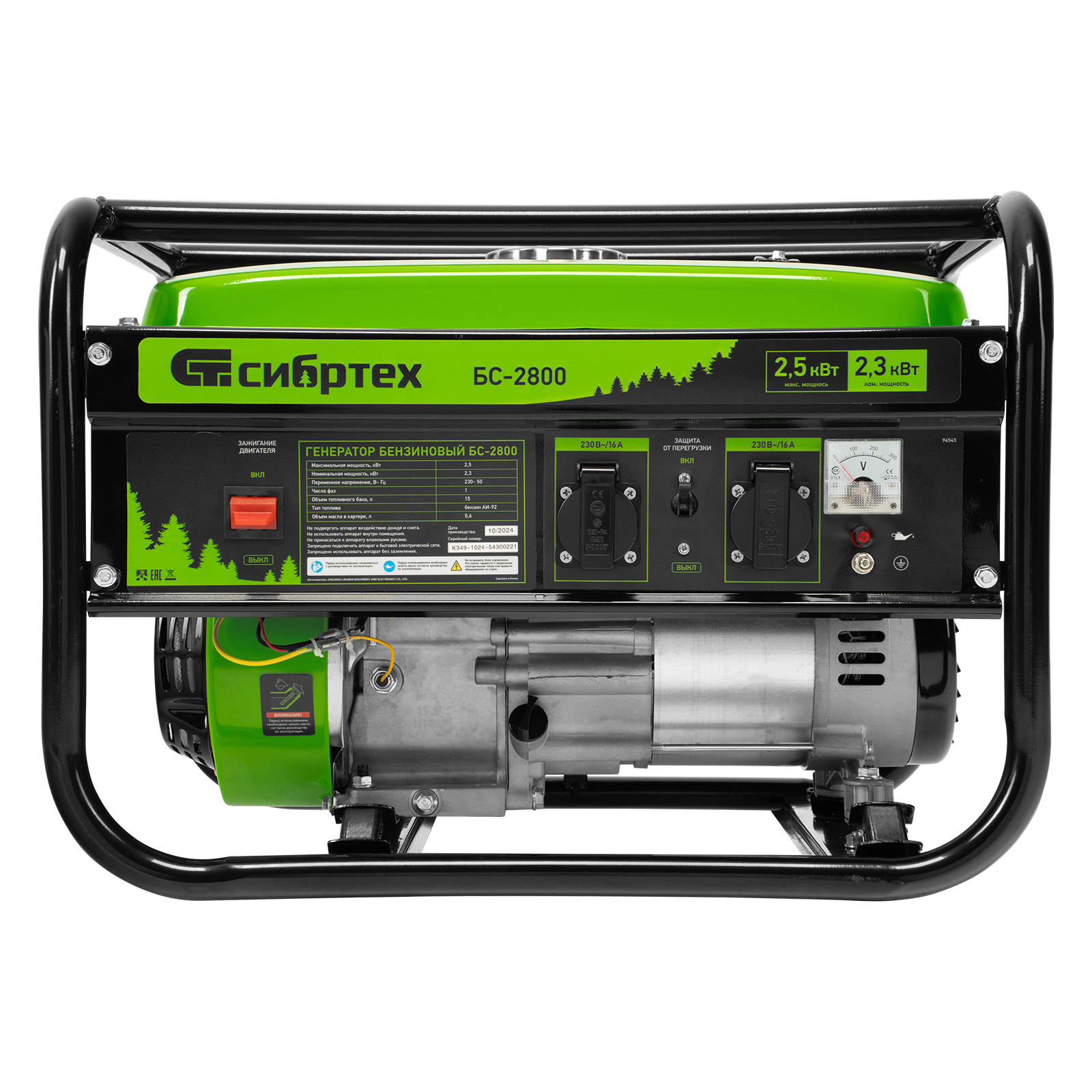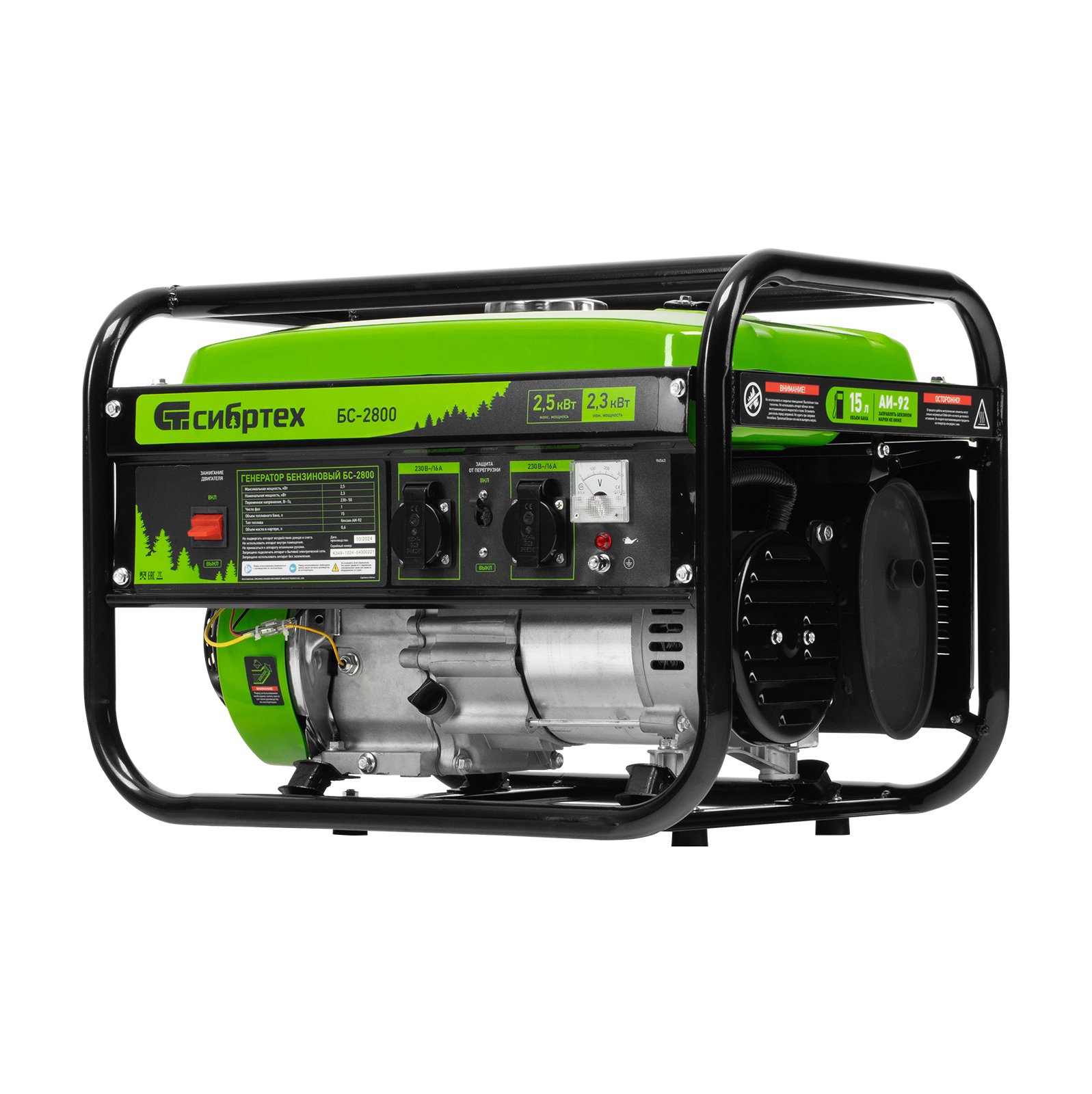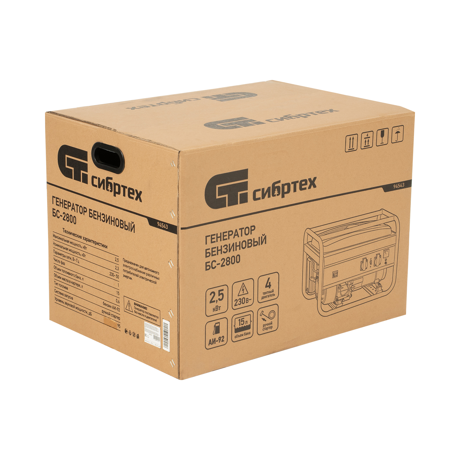 Генератор бензиновый БС-2800, 2.5 кВт, 230В, четырехтактный, 15 л, ручной стартер Сибртех