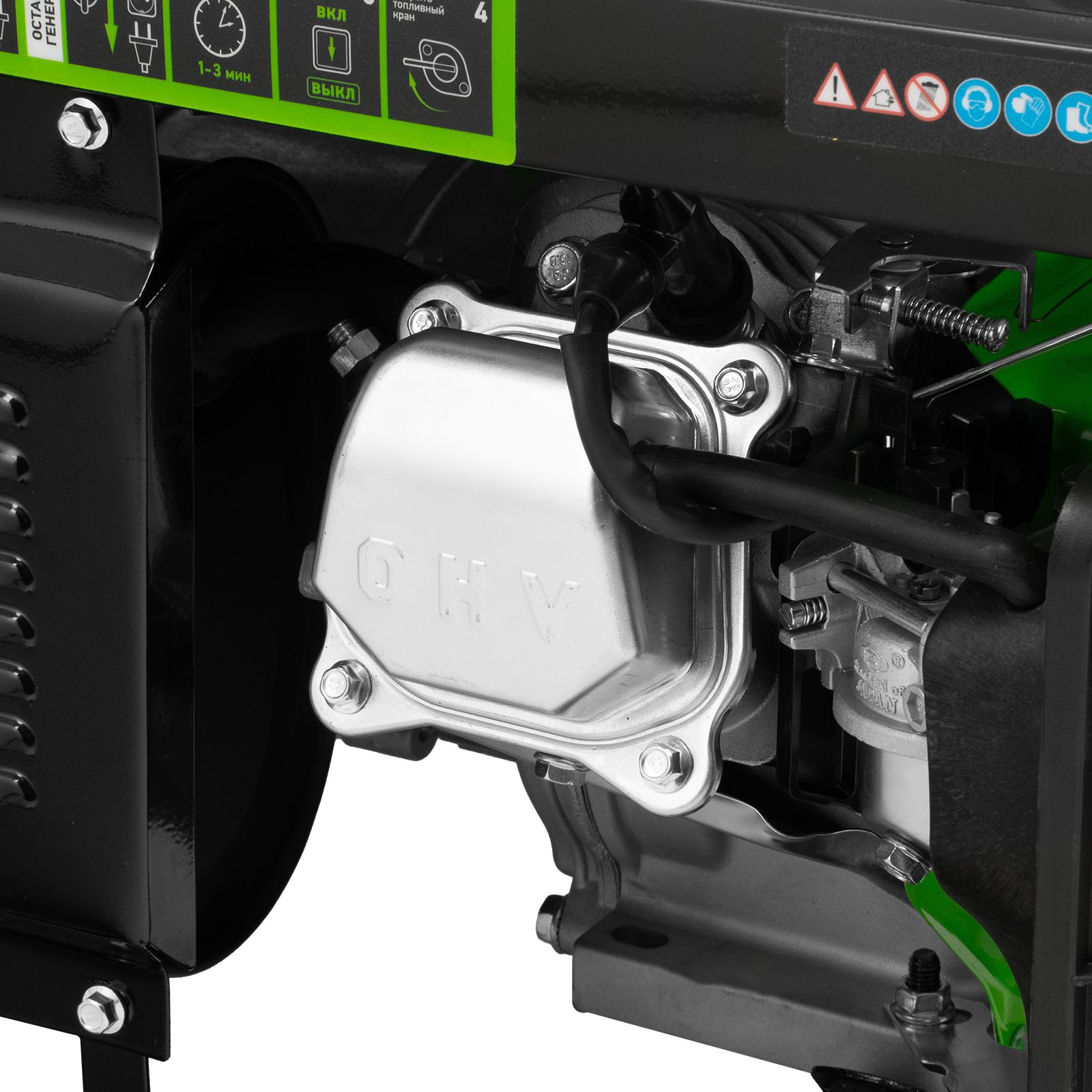 - Прочная конструкция — стальная рама надежно защищает генератор от повреждений.