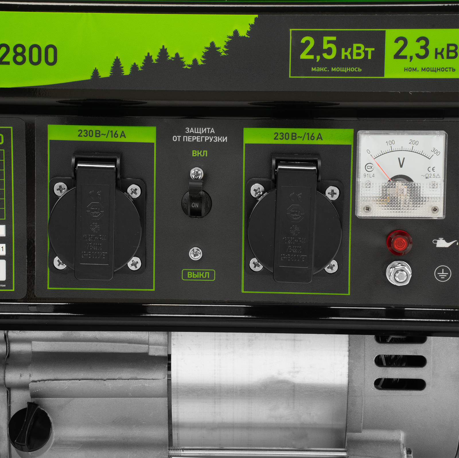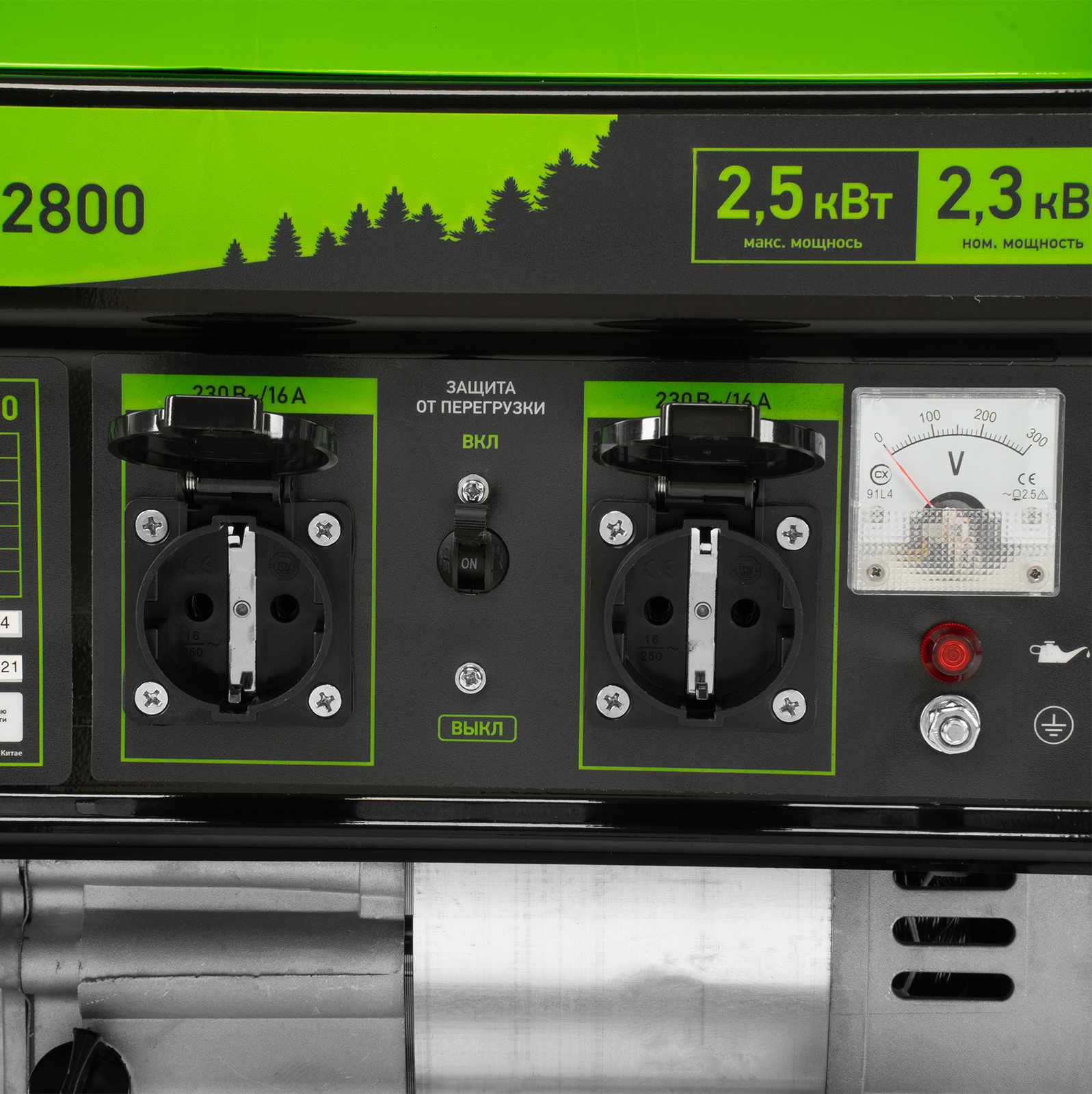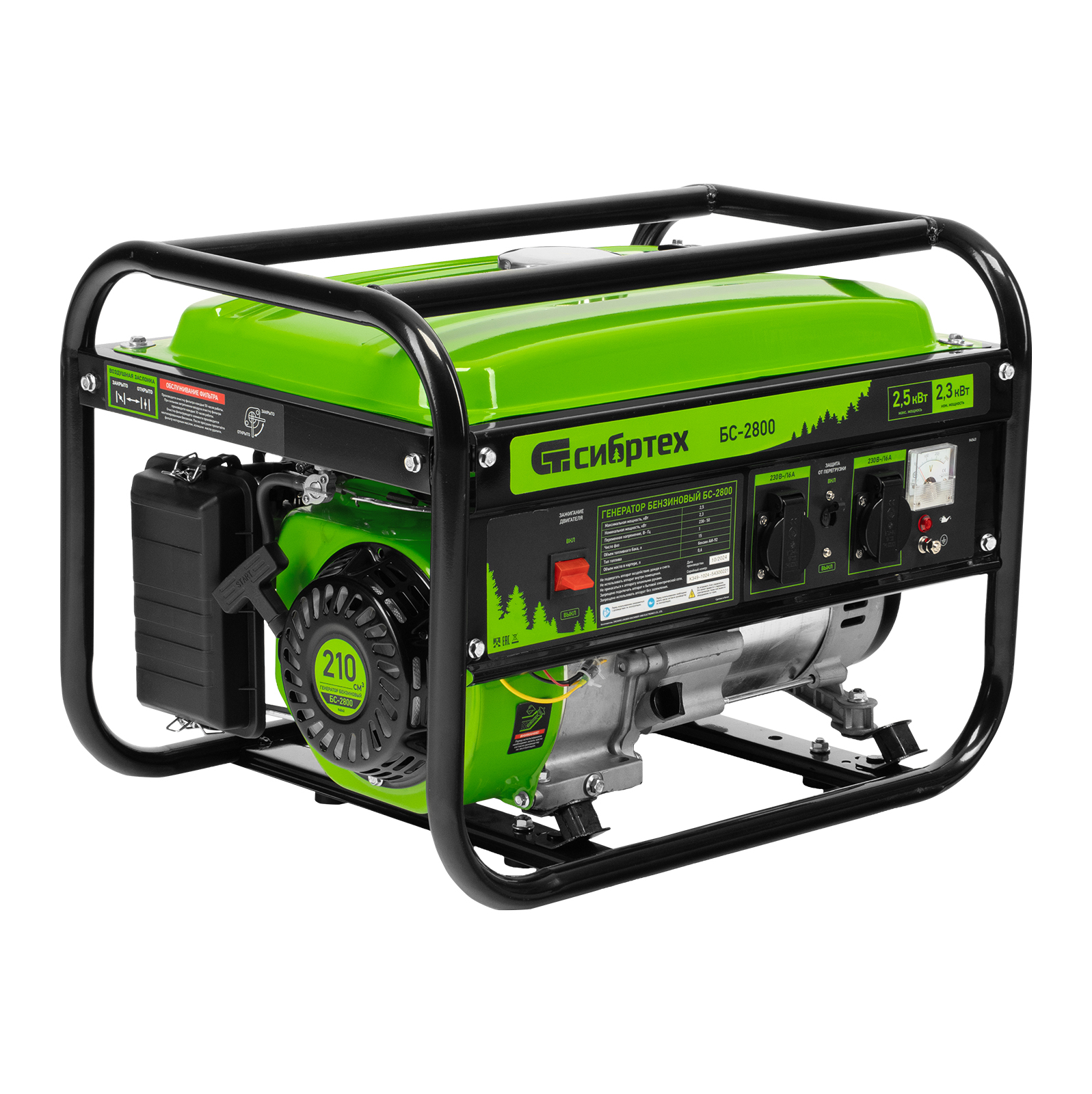 Бензиновый генератор Сибртех БС-2800 94543 на 230 В, максимальной мощностью 2,5 кВт, с 4-тактным двигателем и баком объемом 15 л, подходит для использования на даче, в гараже, мастерской или на стройке. Небольшой вес 37,6 кг позволяет брать генератор с собой на выездные работы или на природу. Мощности 2,5 кВт достаточно для одновременного питания 2 ламп накаливания, холодильника, СВЧ-печи и телевизора. 2 розетки упрощают одновременное подключение нескольких приборов.