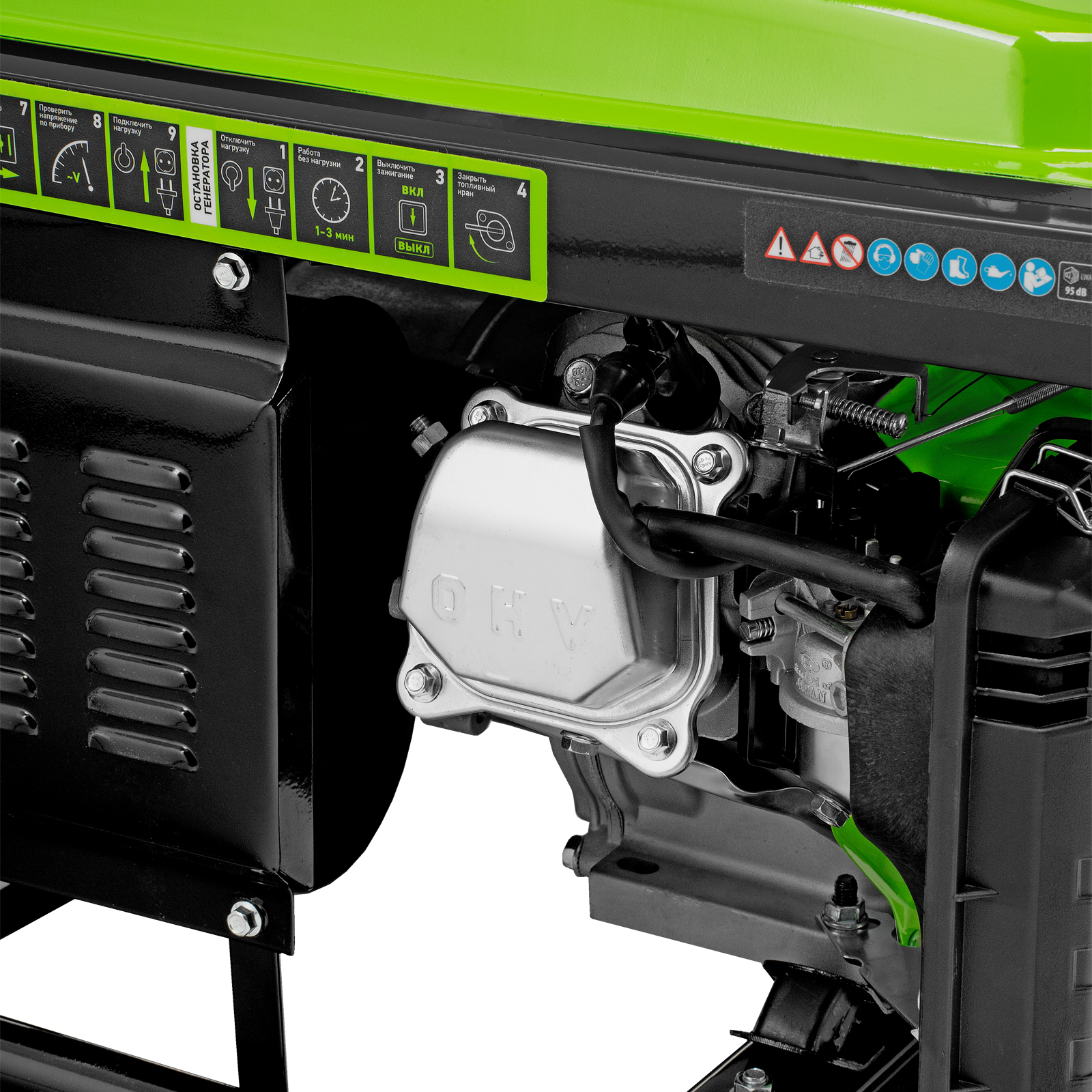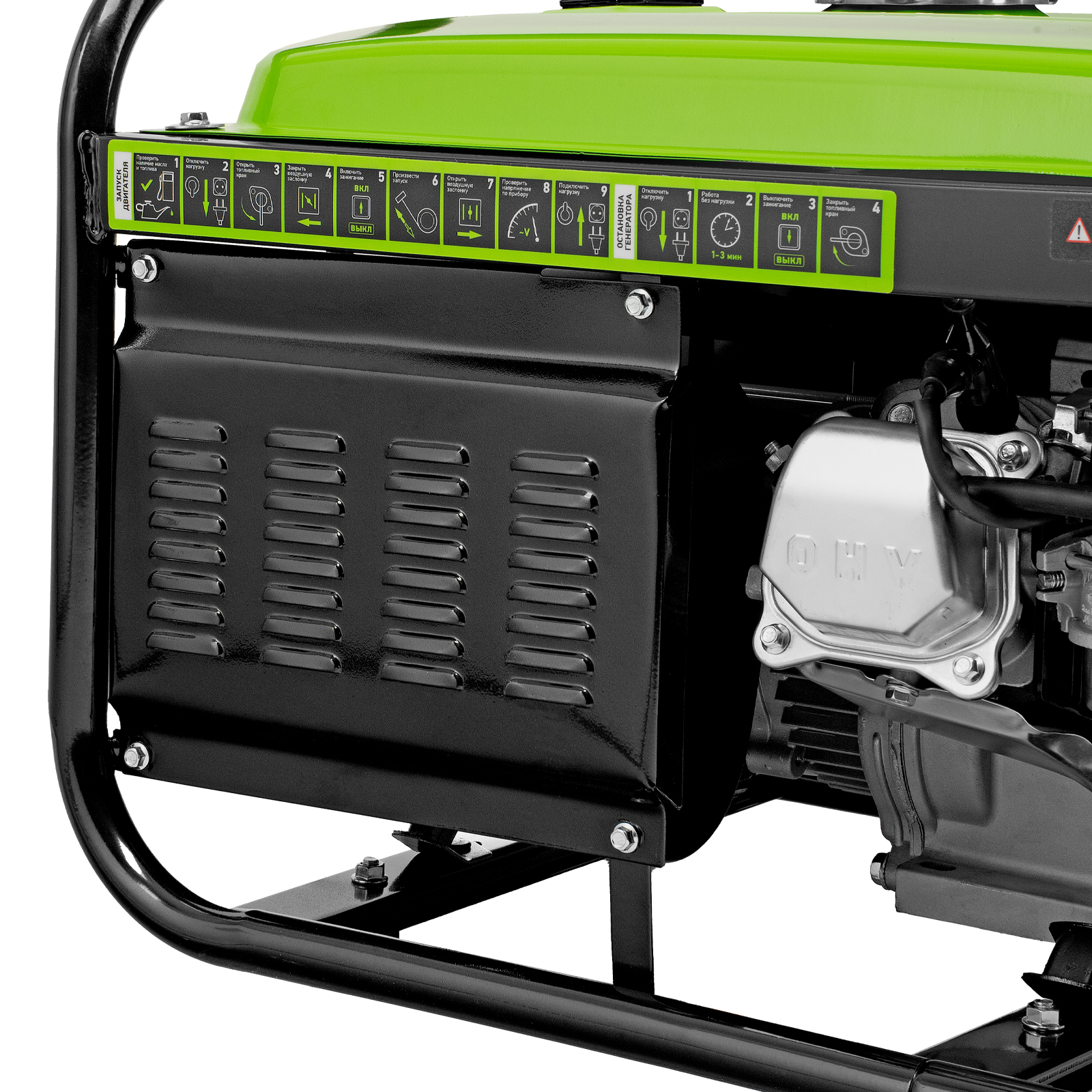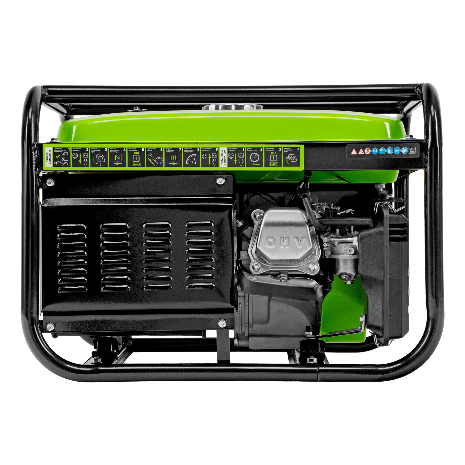 - Прочная конструкция — стальная рама надежно защищает генератор от повреждений.