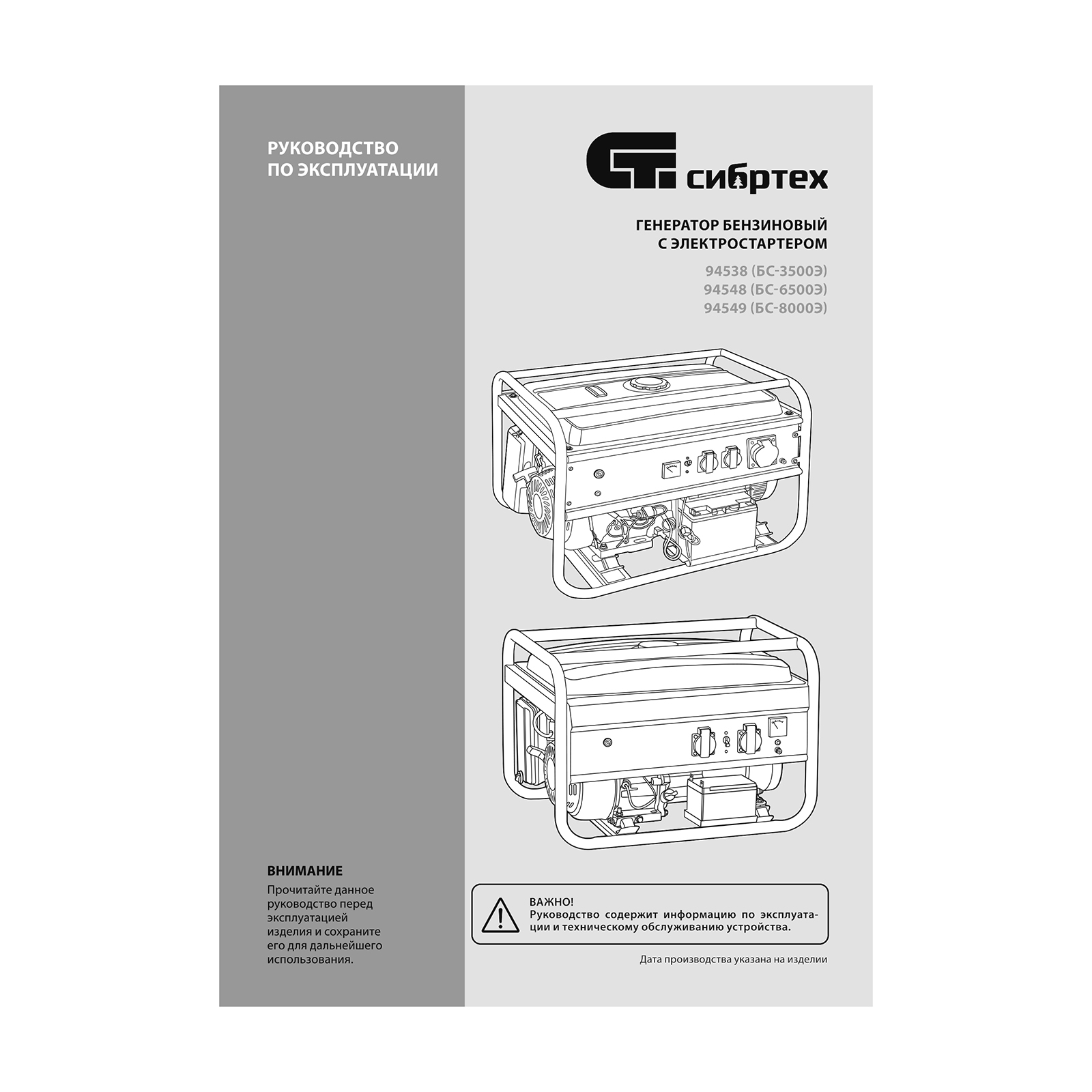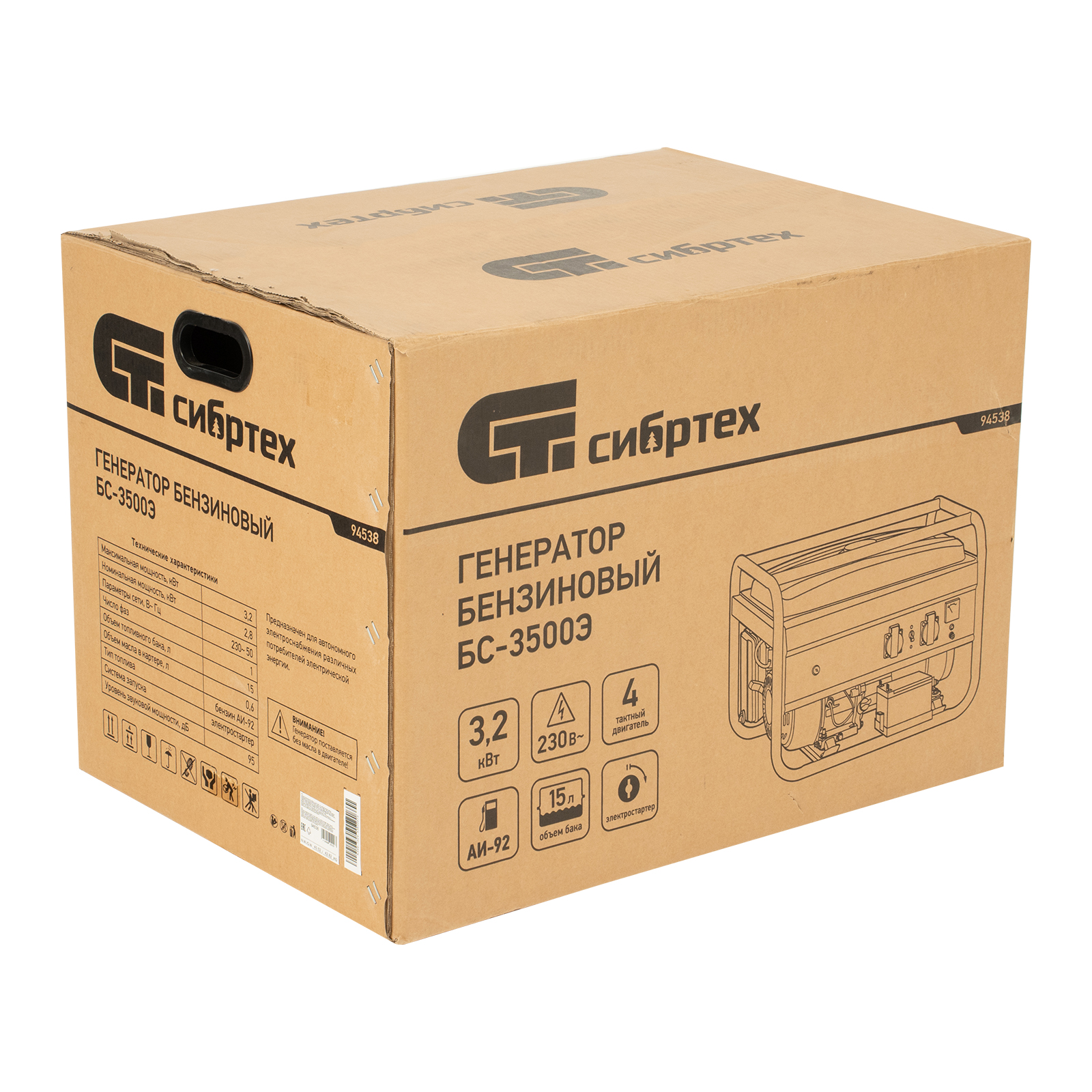 Генератор бензиновый БС-3500Э, 3.2 кВт, 230В, 4-х тактный, 15 л, электростартер Сибртех