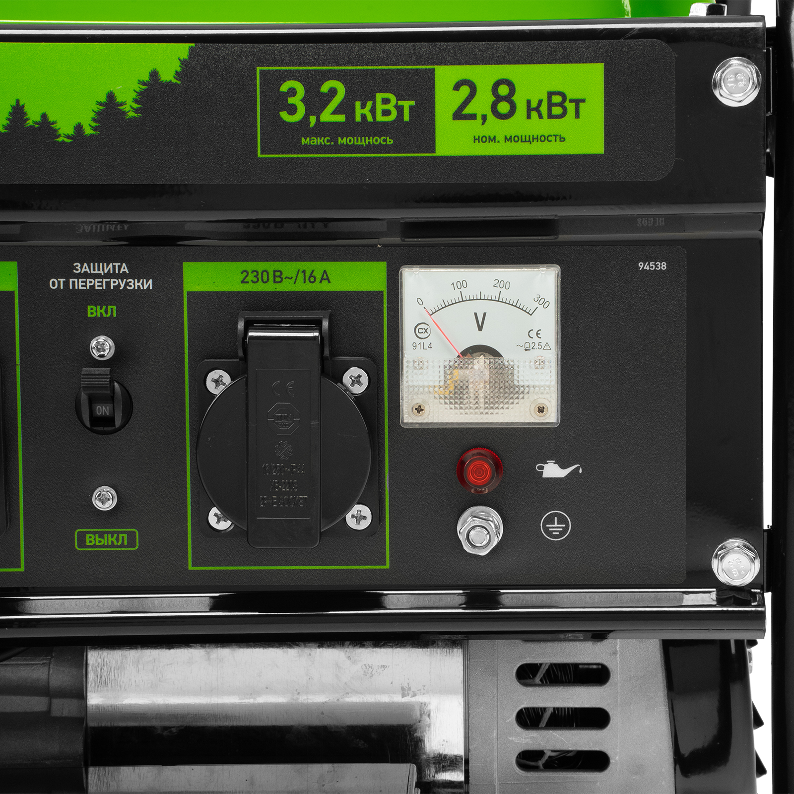 - Контроль рабочих параметров — на панели управления расположен вольтметр для отслеживания напряжения в сети.