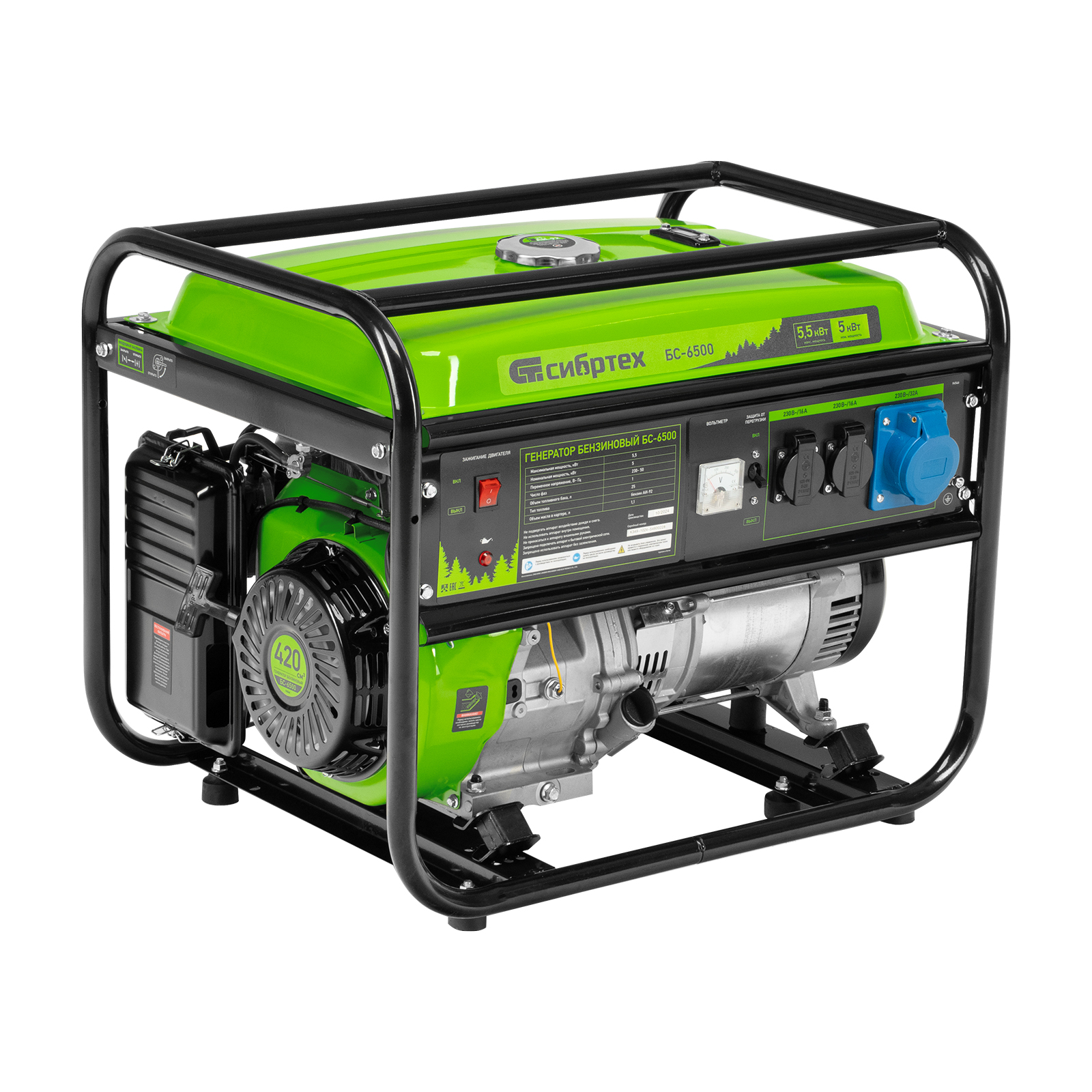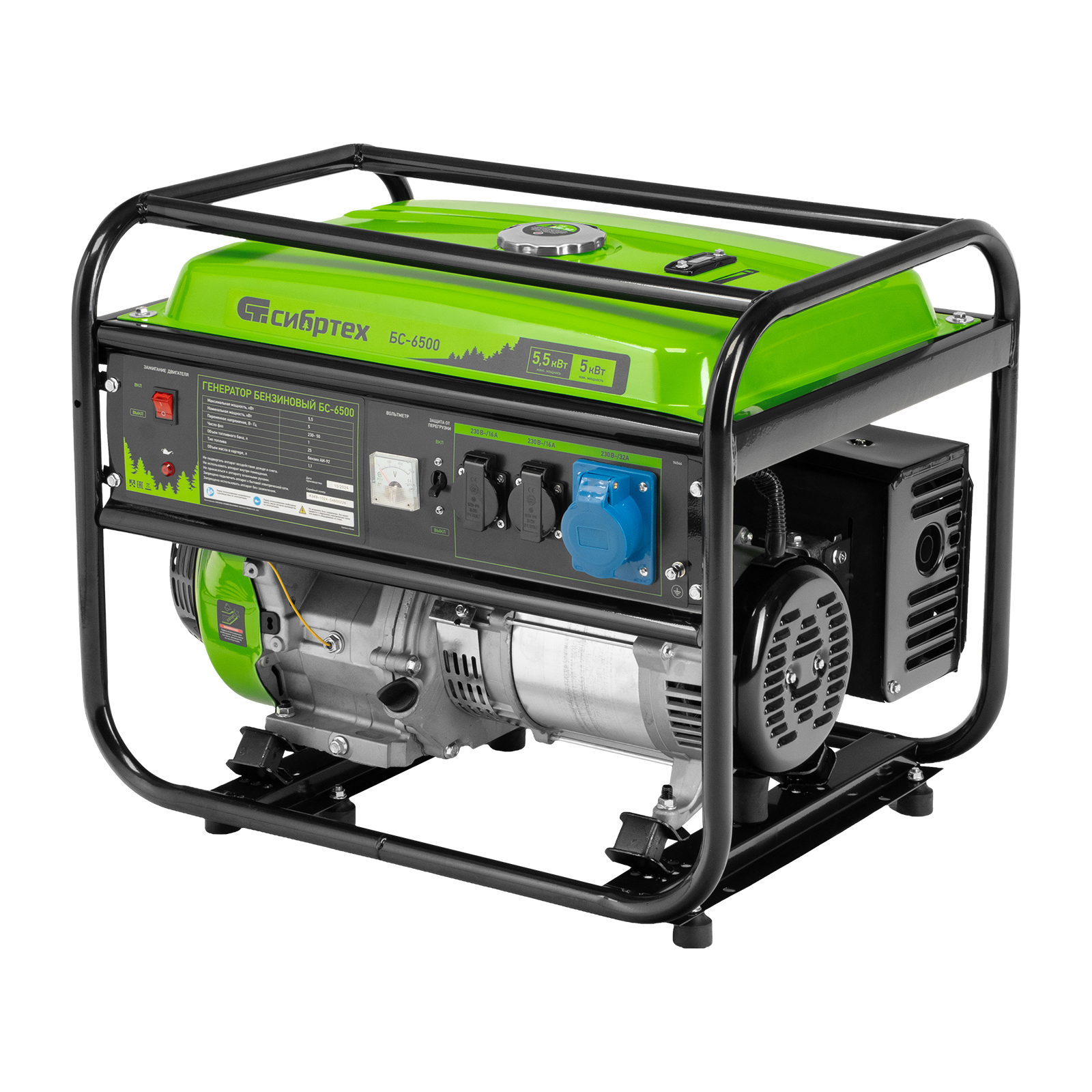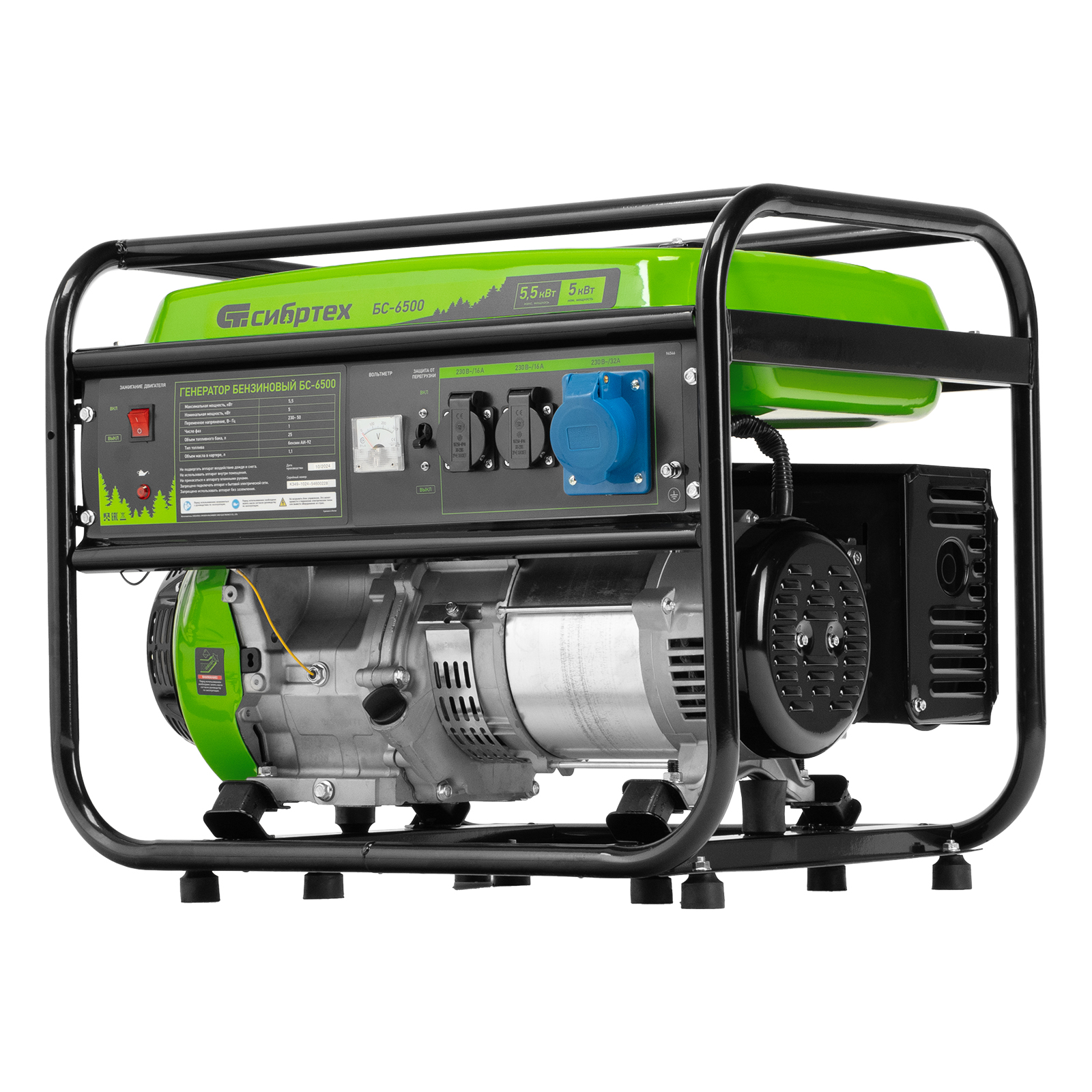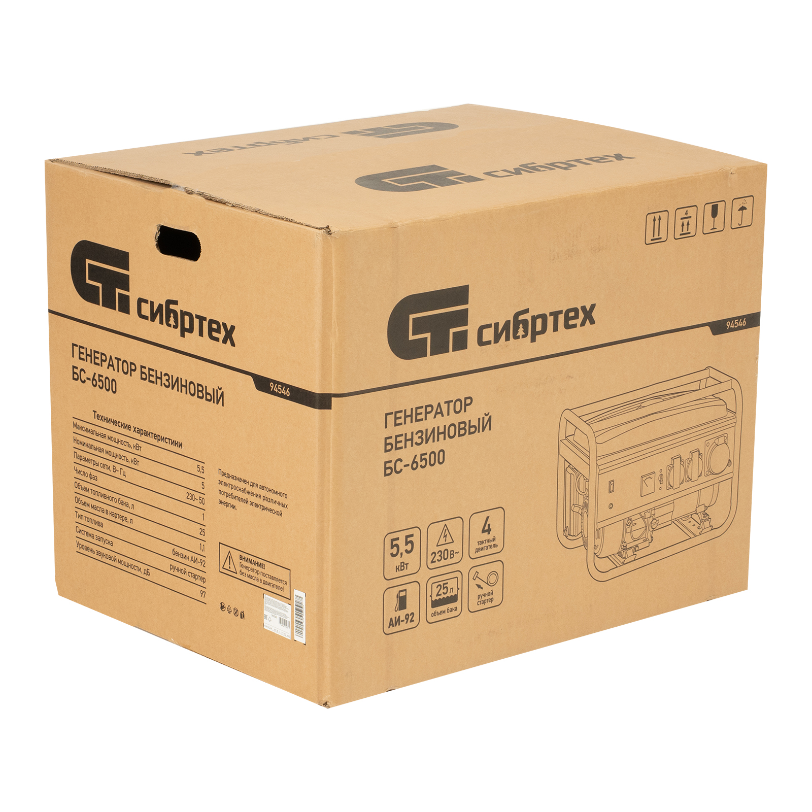 Генератор бензиновый БС-6500, 5.5 кВт, 230В, четырехтактный, 25 л, ручной стартер Сибртех