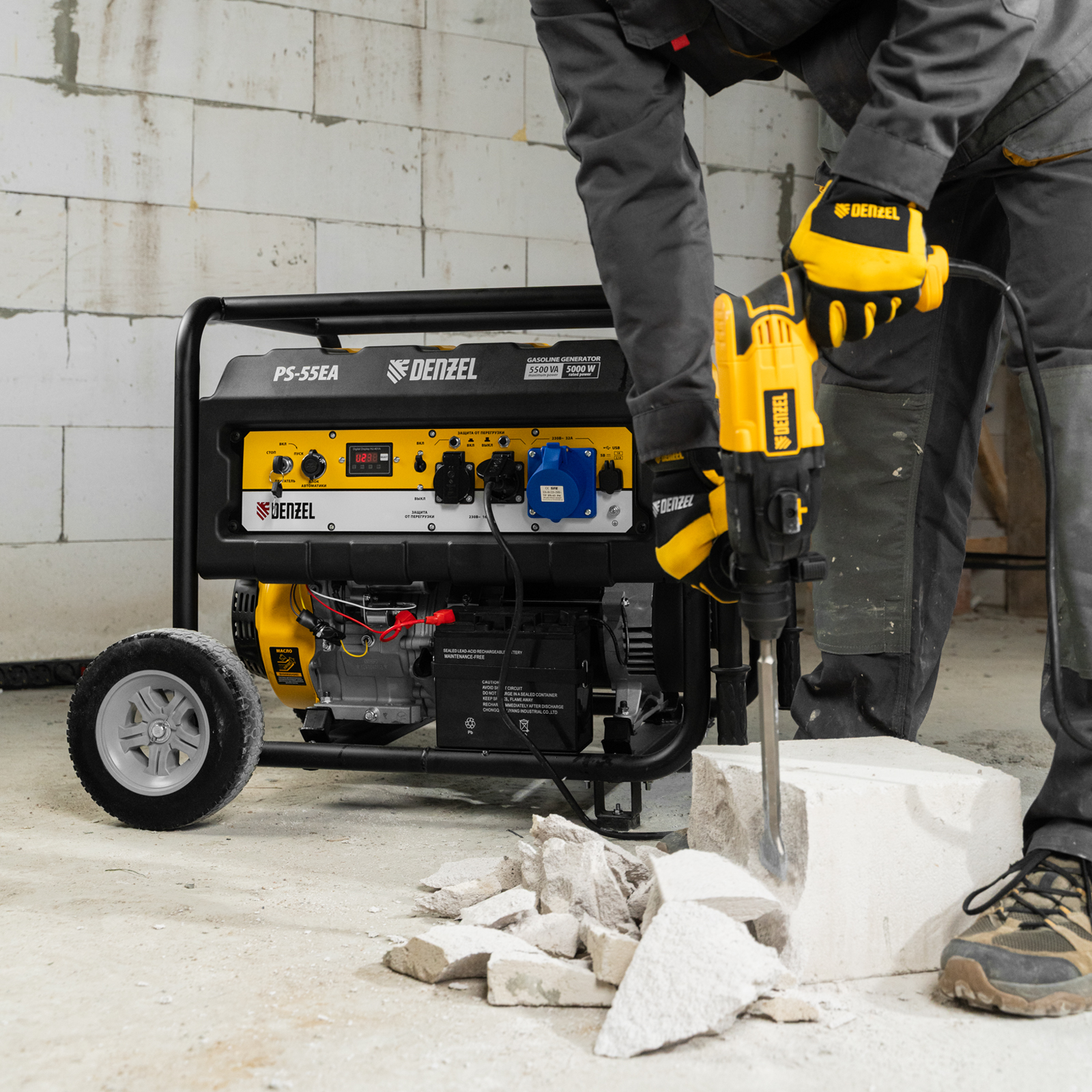 Генератор бензиновый PS 55 EA, 5.5 кВт, 230 В, 25 л, коннектор автоматики, электростартер Denzel