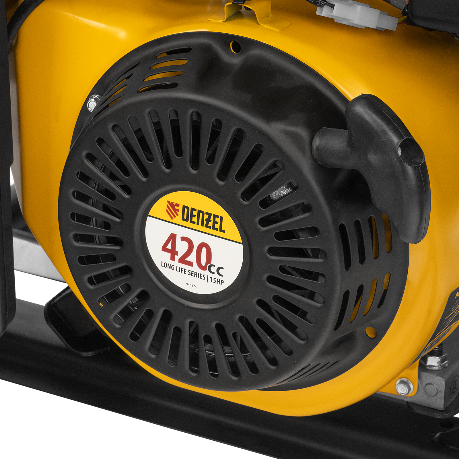Благодаря увеличенному топливному баку генератор способен работать до 10 часов без дозаправки. Индикатор уровня топлива подскажет, когда следует наполнить бак. Обновленный четырехтактный бензиновый двигатель Denzel Long Life объемом 420 см3 обеспечивает стабильную работу генератора в течение длительного времени. При подключении блока автоматического управления Energomatic PS 115 (артикул 946714, приобретается отдельно) генератор самостоятельно запускается при отсутствии электричества, участие пользователя не требуется.