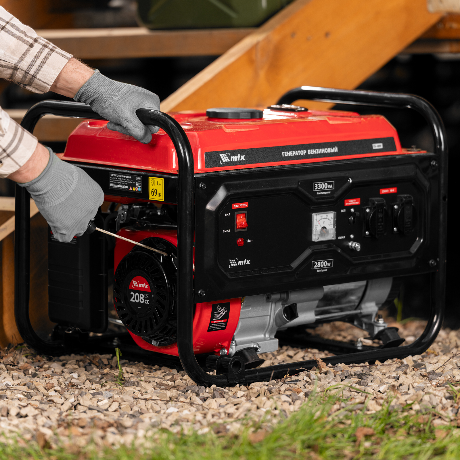Бензиновый генератор MTX RS-4000 946115 максимальной мощностью 3,3 кВт, с ручным стартером, — резервный источник питания, поддерживающий напряжение 230 В и обеспечивающий работу бытовой техники, электроинструмента, осветительных приборов и других потребителей в случае отсутствия электросети. Для подключения потребителей предусмотрены 2 розетки 230 В/16 А. Блок AVR стабилизирует напряжение, что позволяет подключать даже чувствительную технику. Генератор пригодится в загородном доме.
