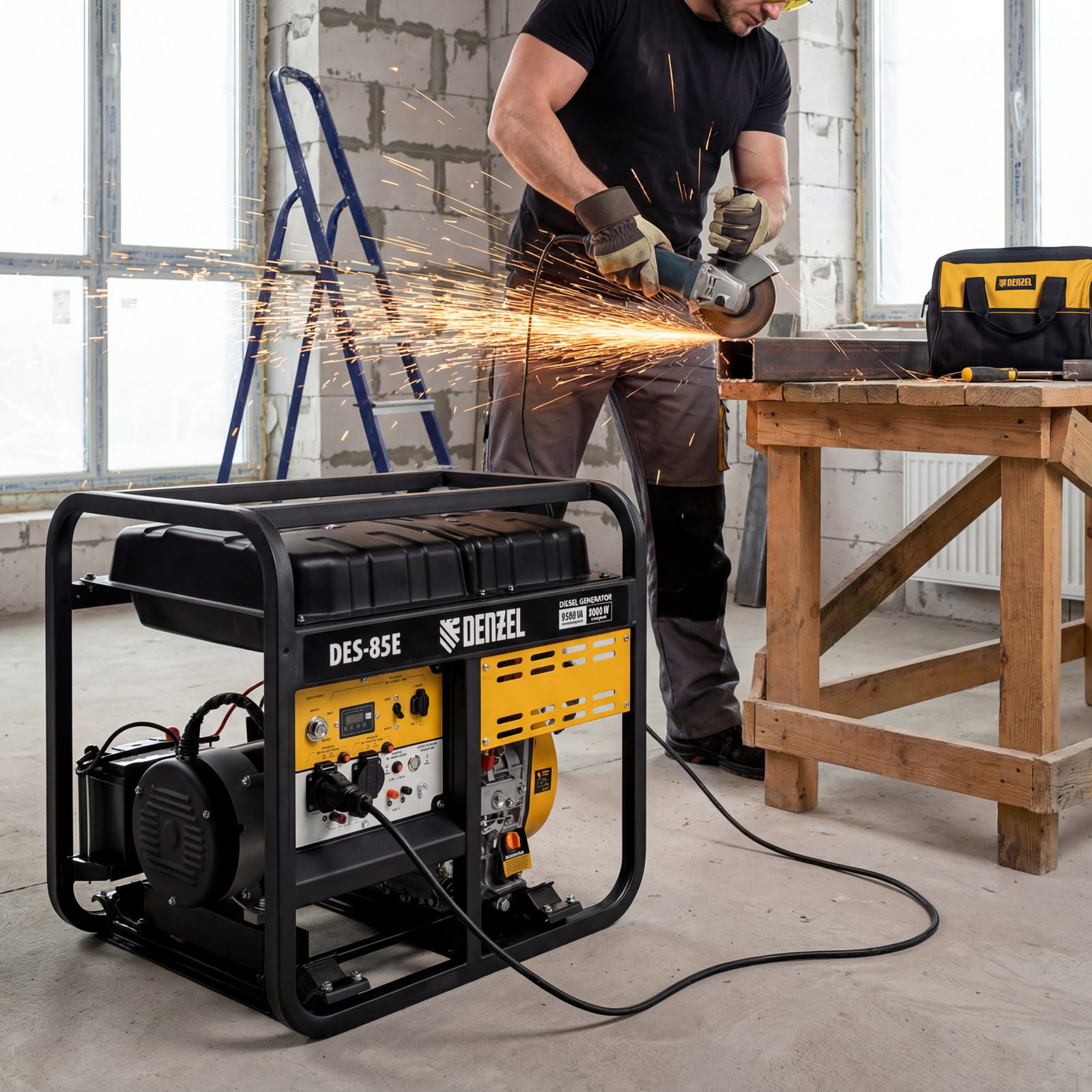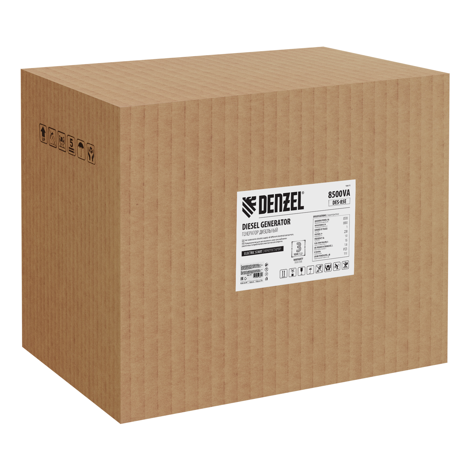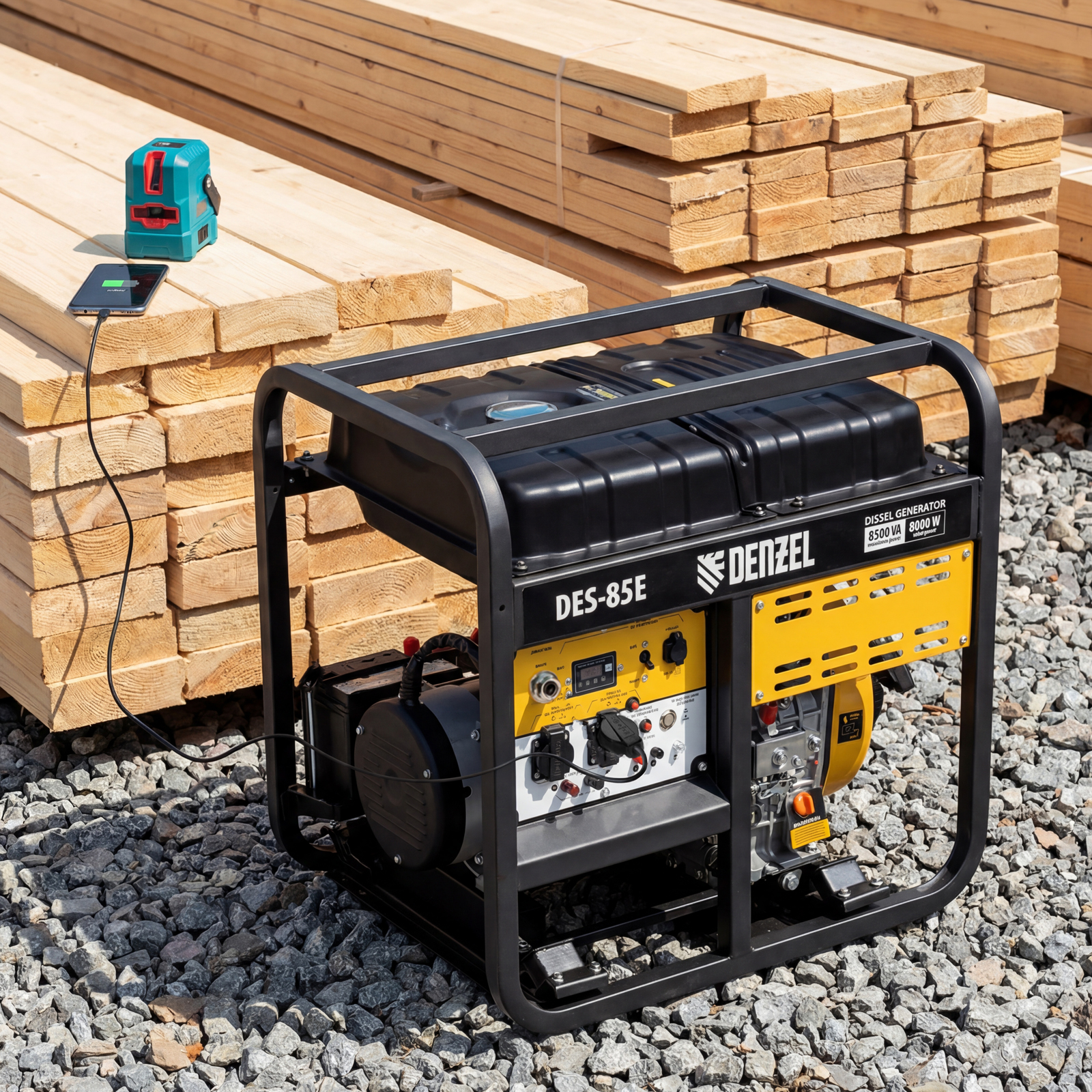 Генератор дизельный DES-85E, 8,5 кВт, 230 В, 16 л, электростартер Denzel