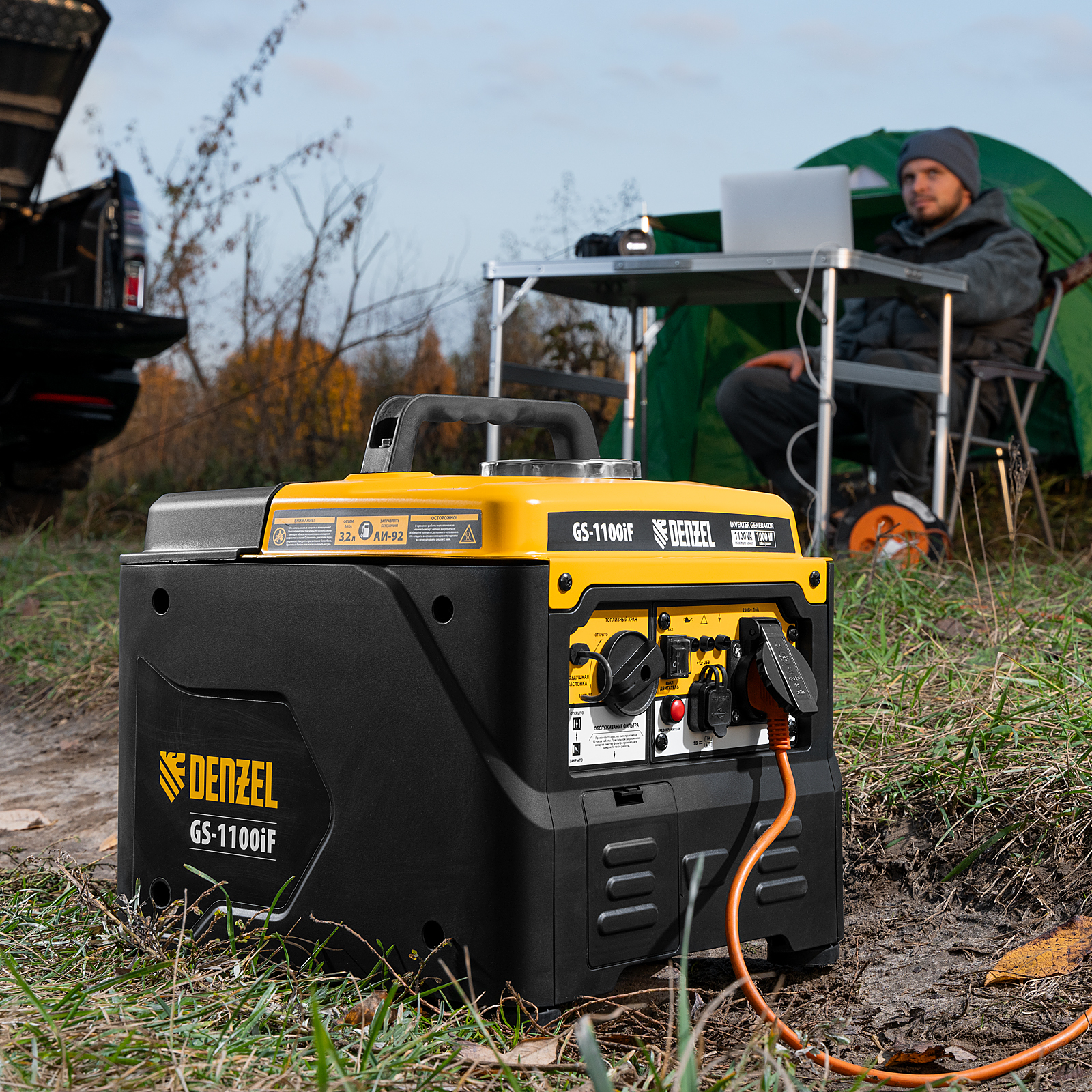 Генератор инверторный GS-1100iF, 1,1 кВт, 230 В, ручной старт DENZEL в Казани