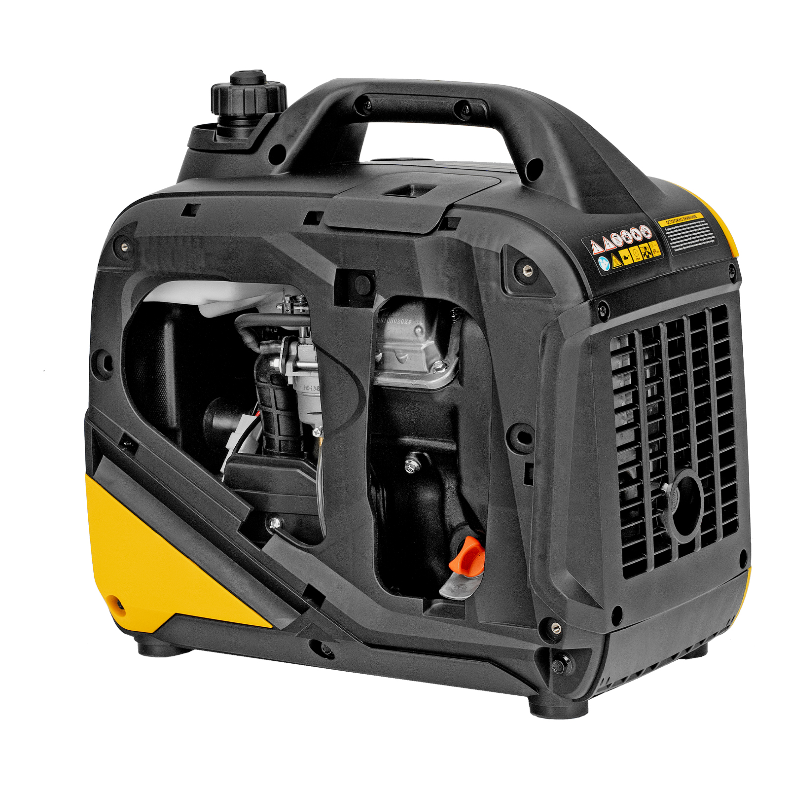 - Удобная транспортировка — в верхней части корпуса предусмотрена рукоятка для перемещения генератора.