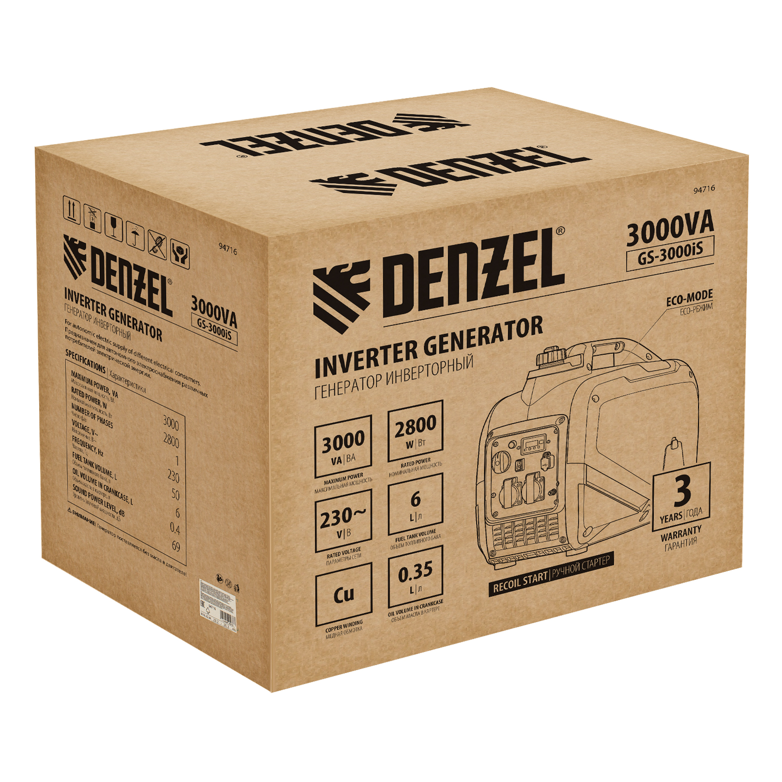 Генератор инверторный GS-3000iS, 3,0 кВт, 230 В, закрытый корпус, ручной старт DENZEL в Казани