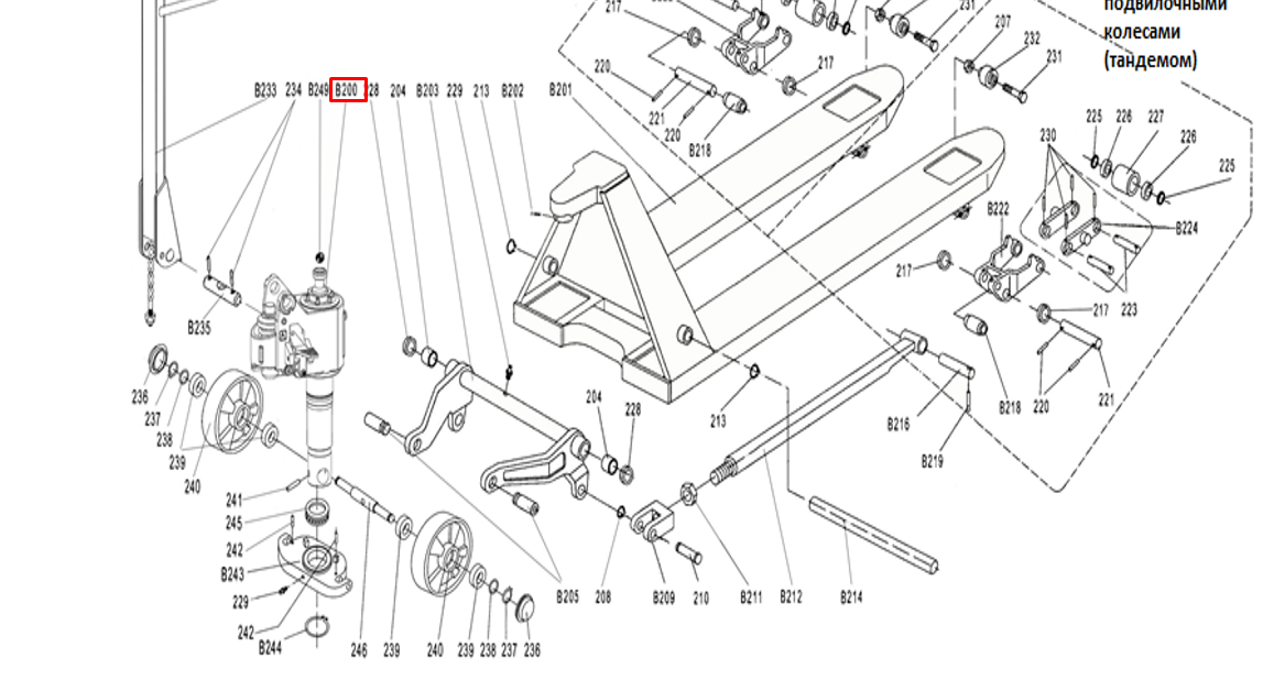 Гидроузел в сборе для тележек гидравлических RHP(BF) шток 35 мм (сталь) (Oil pump Assembly, B200) в Казани